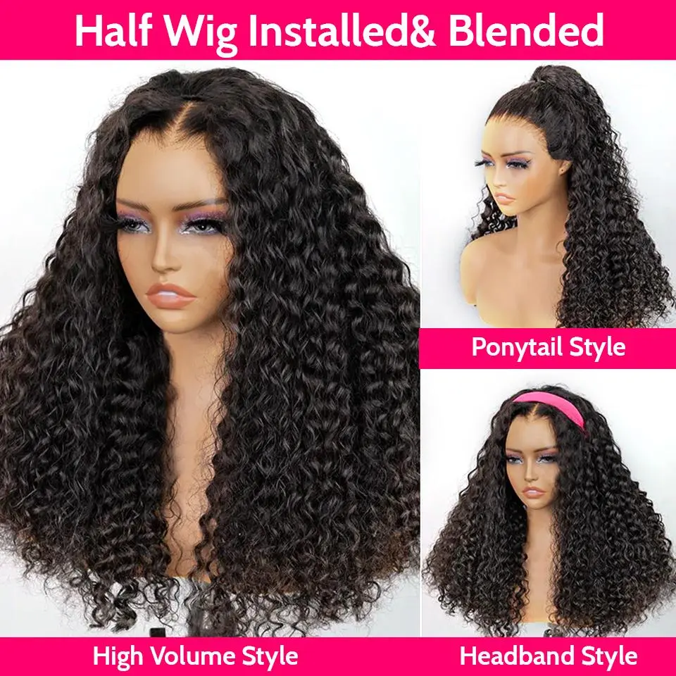 [18‘’=$96]Yawawe Hair 3 IN 1 Half Wigs Human Hair Kinky Curly Headband Wig Upgrade Glueless Wigs With Drawstring Seamless Clip Ins Flip Over