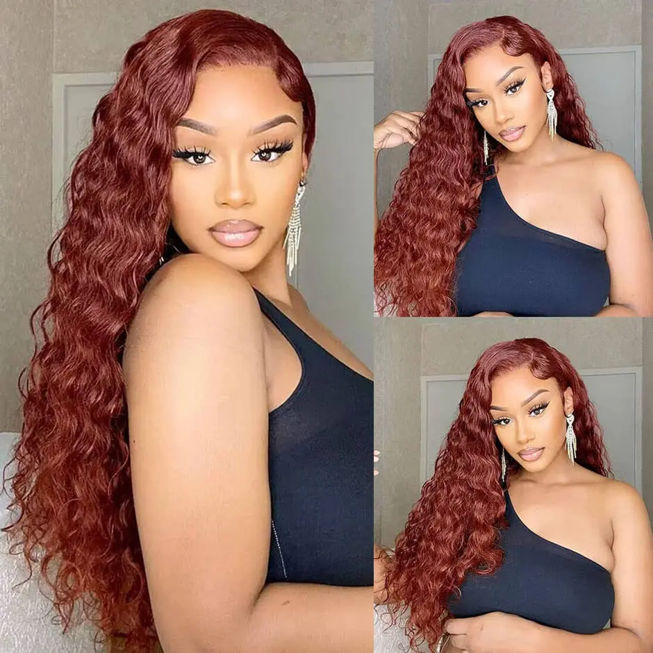 YAWAWE Hair Water Wave Reddish Brown Wig