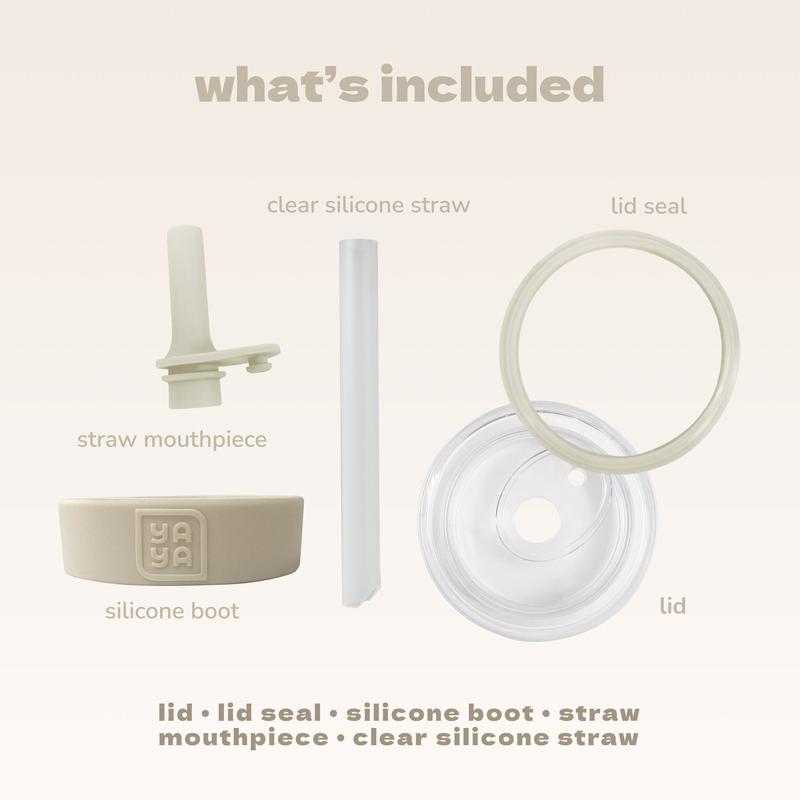 Has everything you need to prolong the life of the cup —10/10. I only wish the “silicone boot” has a tighter fit, or maybe be engineered to be a bit stickier in the inside, so my 14 month old can’t pull it off. Haven’t put it back on, i will try again at a later point in time.