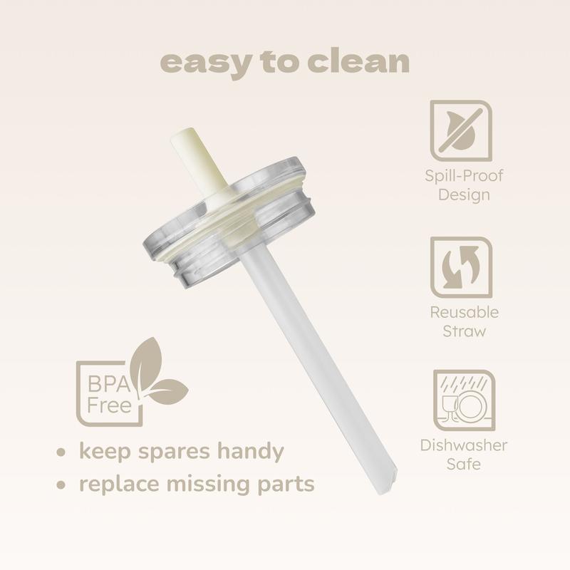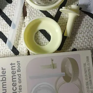 For some reason the replacement accessories were dirty when I opened the package. There was no hole or anything in the package. Completely sealed but the lid, the cover for the bottom and the straw were dirty. Dusty, had some type of dirt on them; not ground dirt. I washed them and soaked them.