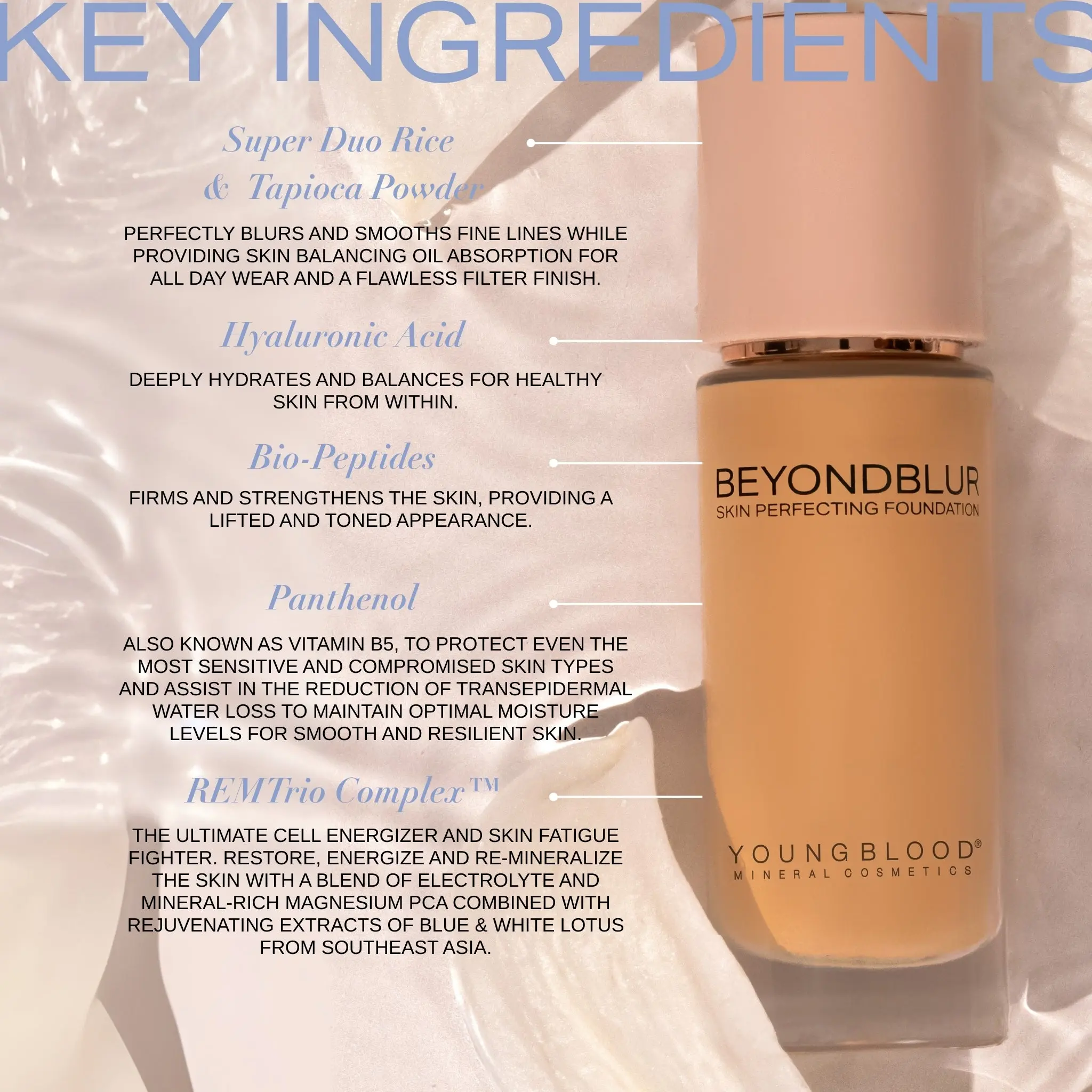 The BeyondBlur Skin Perfecting Foundation is everything I want in a base — lightweight, smooth, and skin-enhancing. It blends seamlessly, blurring imperfections while still letting my natural skin shine through. The finish is soft and radiant, never cakey or heavy, and it lasts beautifully throughout the day. I love how it evens out my tone, minimizes pores, and gives that healthy, airbrushed look without feeling like I’m wearing much at all. It’s the perfect balance of coverage and comfort — truly a foundation that makes my skin look and feel its best!!
