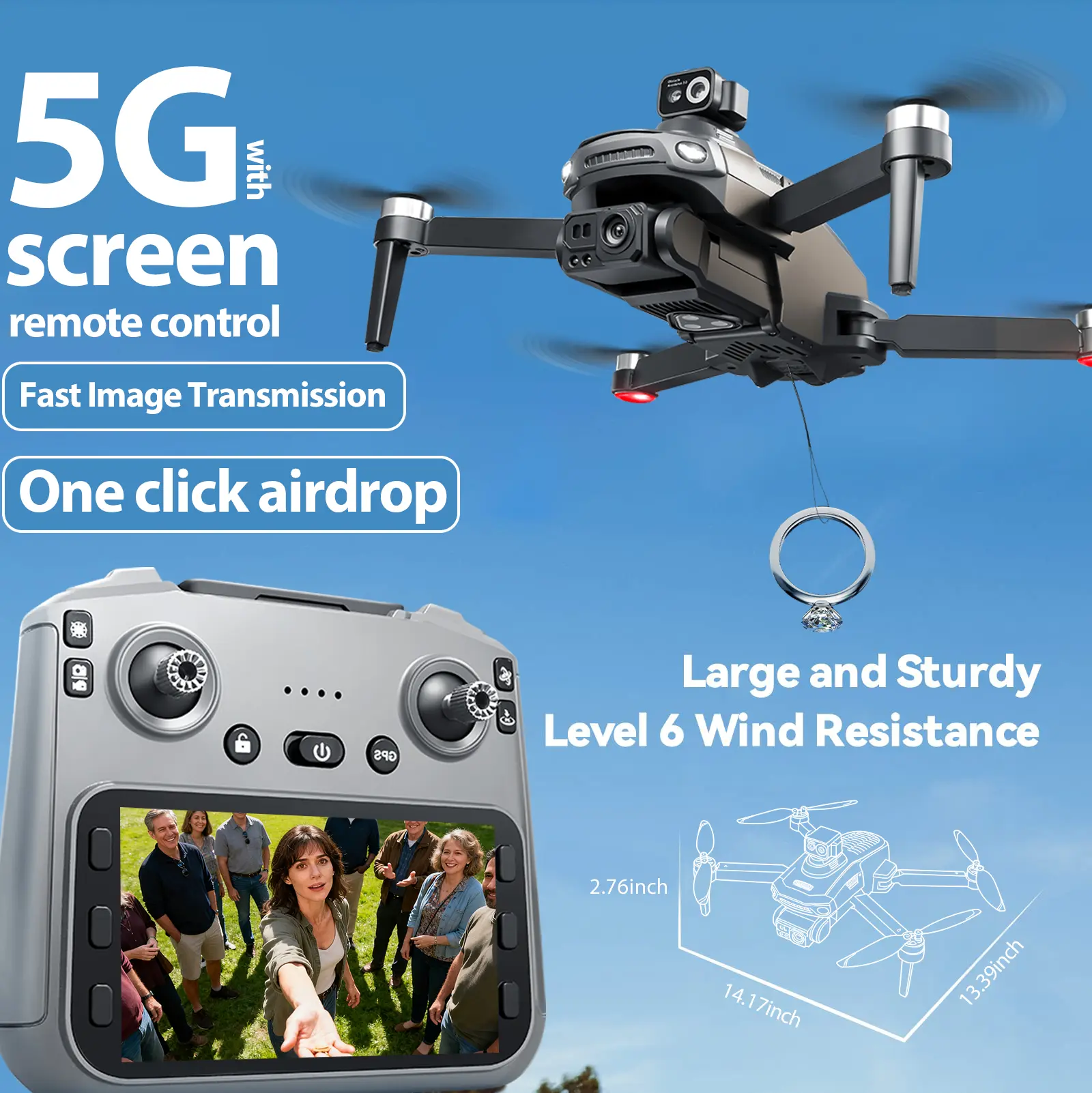 ·4.5-Inch LCD Screen: This GPS drone features a 4.5-inch LCD screen, supporting 5GHz real-time transmission. It allows you to take photos/videos without a phone, simplifying operation.