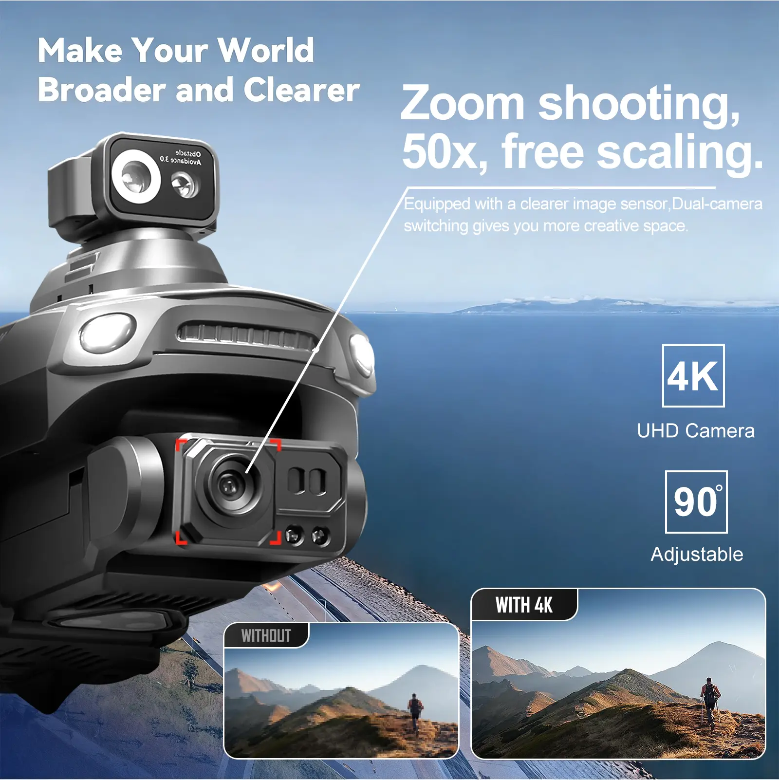 ·Wide Angle Camera: The drone comes with a 4K camera and an 8GB SD card. It offers a 120° wide angle and 90° electronic adjustment, ensuring you capture 3840*2160 HD photos/videos.
