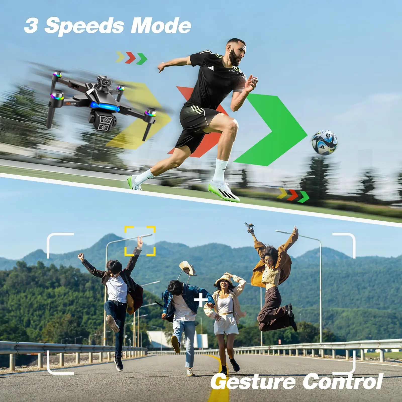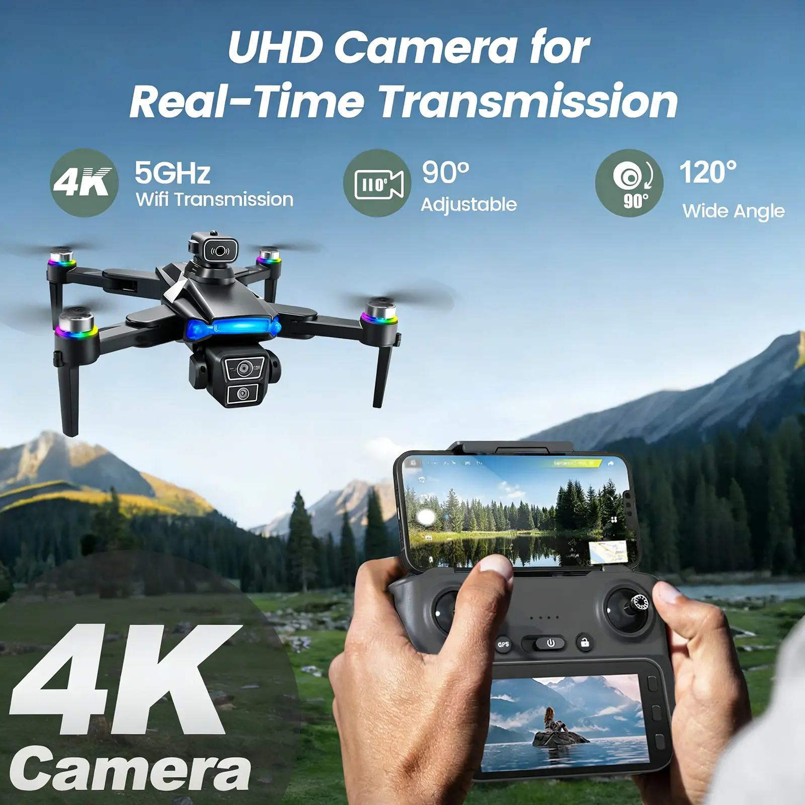 This 4K drone features dual cameras that capture ultra-high-definition 4K video and sharp, high-quality photos (4K resolution). The wide-angle anti-shake lens ensures smooth and stable footage even during flight, and with intuitive one-touch controls, recording professional-grade content has never been easier.