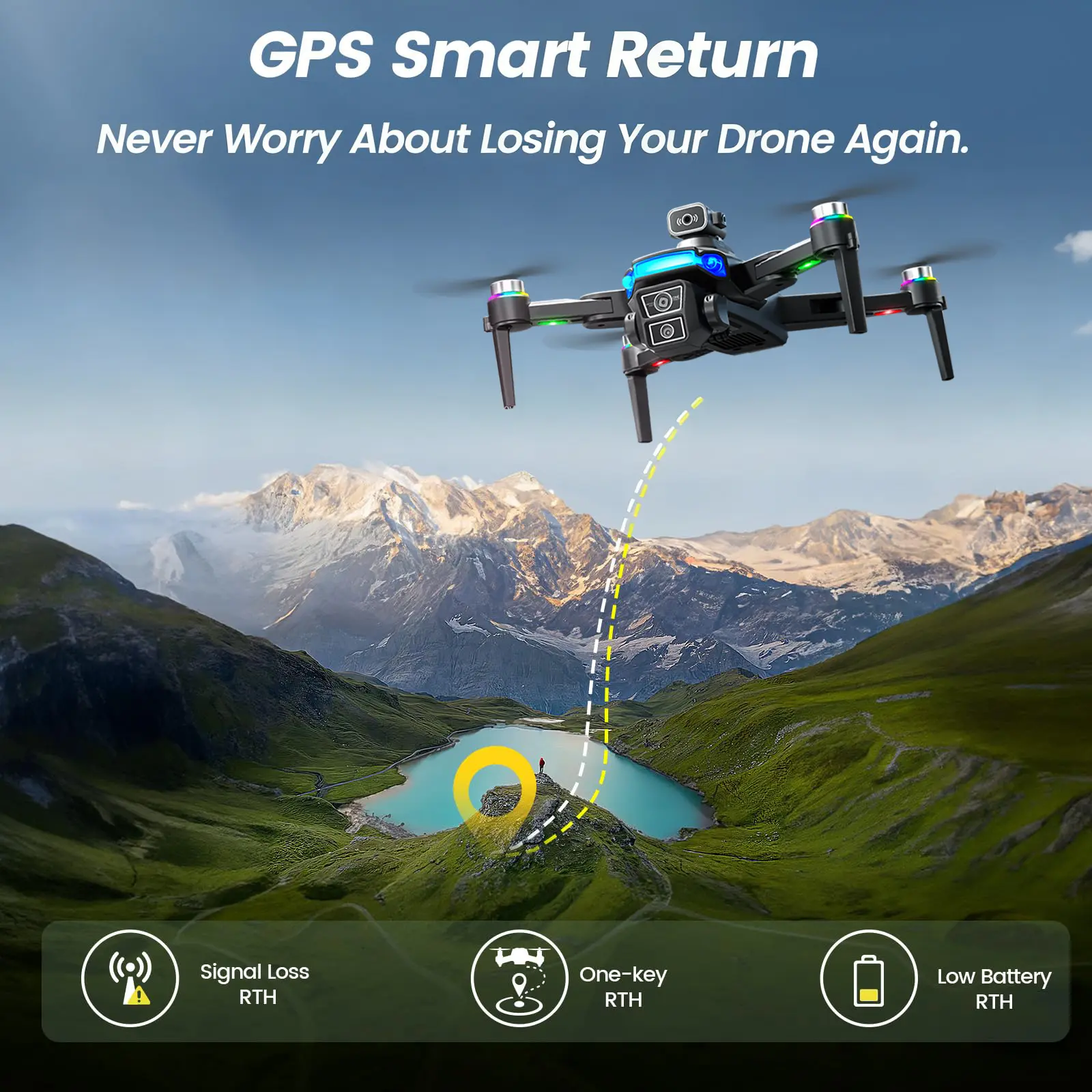 This professional-grade adult 4K GPS drone comes with an auto-return function, which uses precise GPS positioning to fly the drone back to its takeoff point automatically. Whether the signal is lost, the battery is low, or return is manually activated, the drone will safely return automatically—ensuring stable and reliable recovery every time.