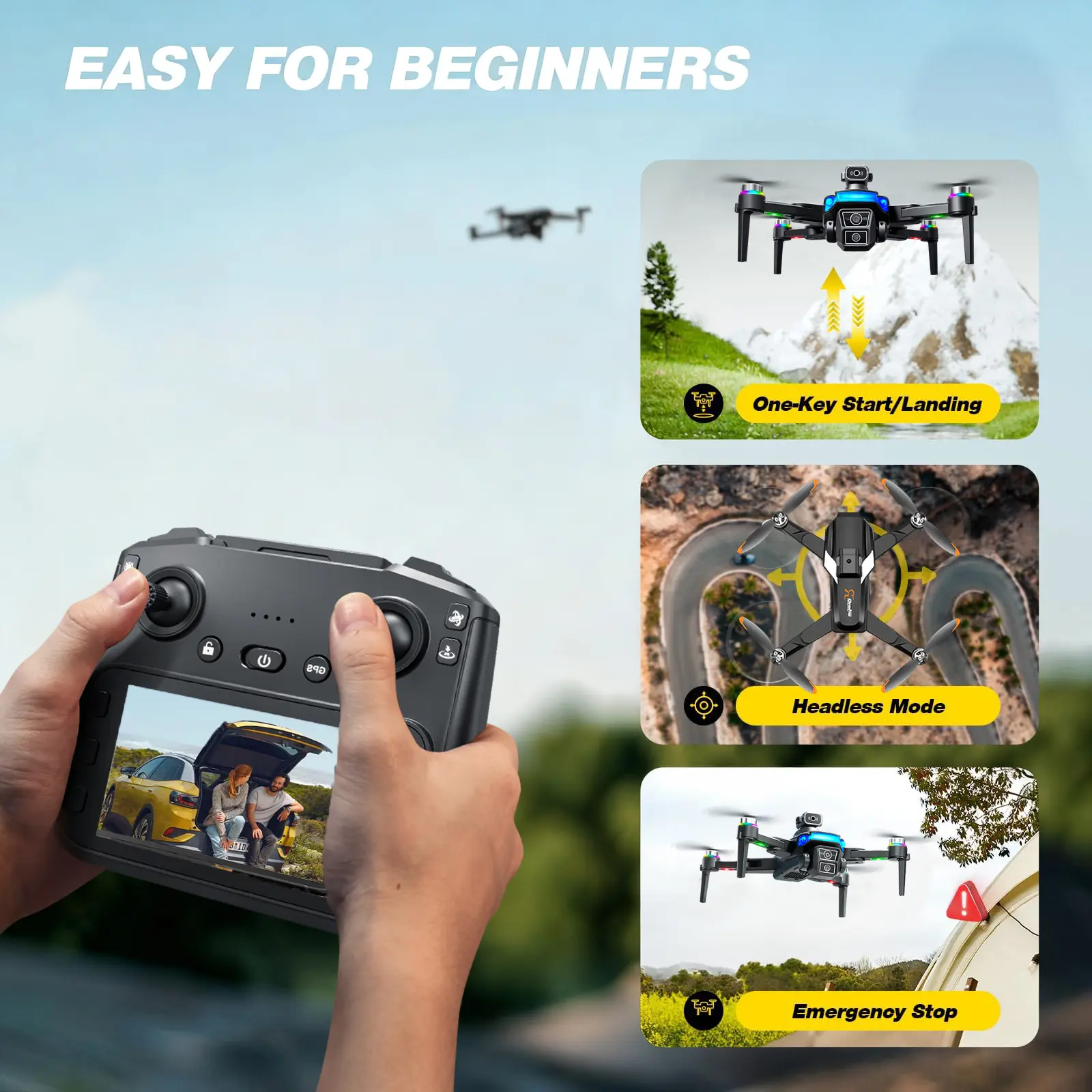 This drone is equipped with a built-in 4.5-inch HD LCD remote control screen, eliminating the need for a mobile phone connection. Even in bright sunlight, you can clearly view real-time video footage with flight data displayed synchronously on the screen—allowing for precise control throughout your flight and greater confidence in operation.