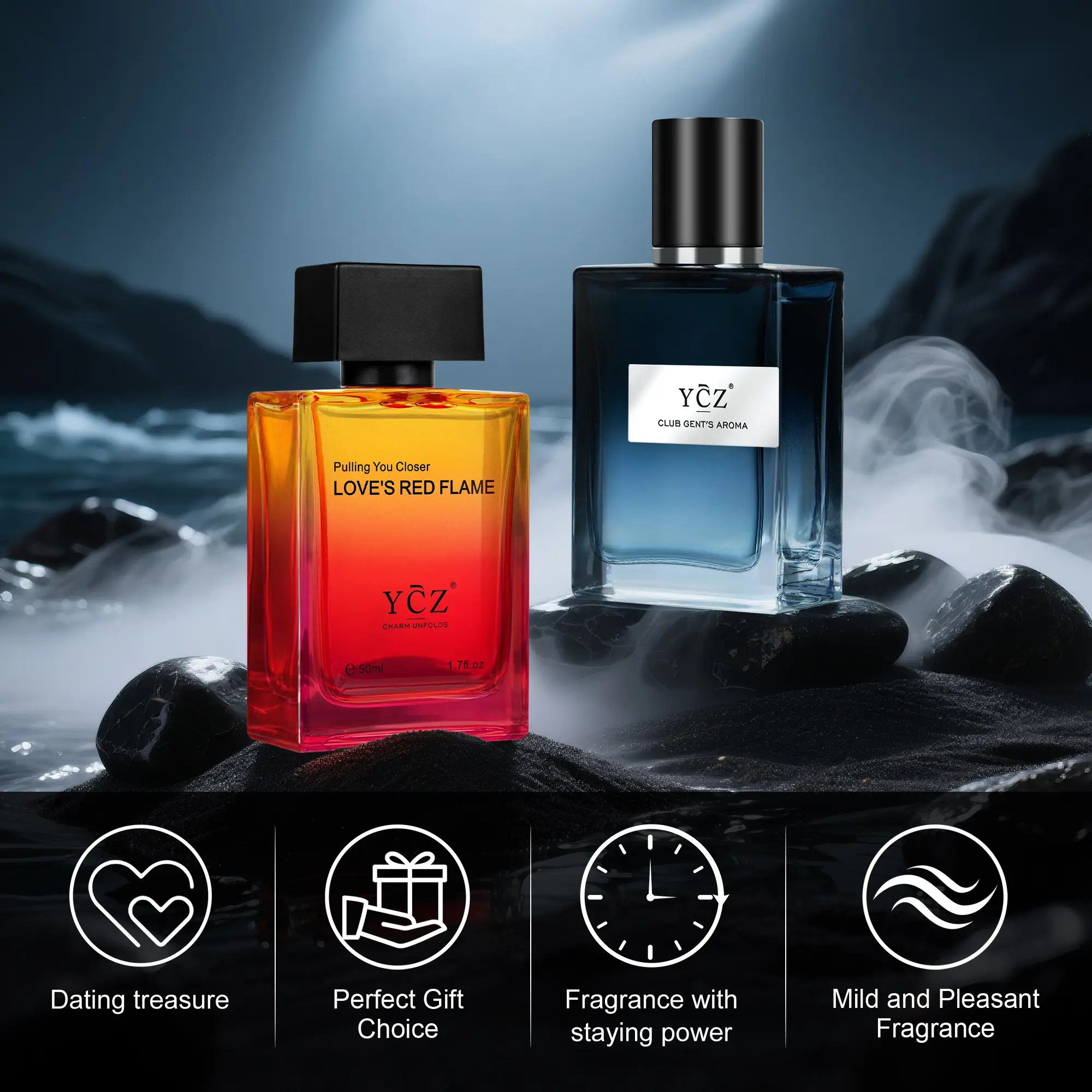 YCZ Men's Dual Perfume Set includes "Club Gent's Aroma" and "Love's Red Flame." Perfect for nightclubs and daily wear, this set offers versatile scents tailored to various scenarios. Each 50ml bottle delivers a unique aroma, ensuring you stand out effortlessly. 🌟