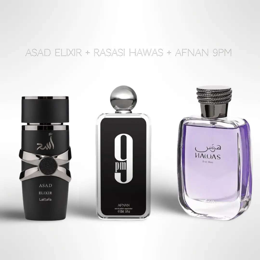 Experience unmatched versatility and signature masculinity with the Asad Elixir + Hawas + 9PM Year-Round Fragrance Bundle by Elijah — a perfectly curated trio designed to keep you smelling confident, fresh, and captivating in every season. Whether you’re heading to work, a night out, or a casual day, this bundle gives you the right scent for every moment.