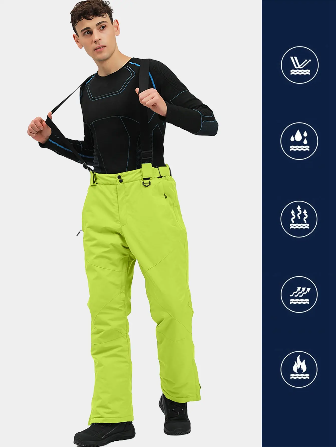WATERPROOF & BREATHABLE: Men's snowboard pants are made of a microporous waterproof membrane fabric with molecules smaller than water molecules but larger than air molecules, so that our men's ski pants are waterproof and breathable.