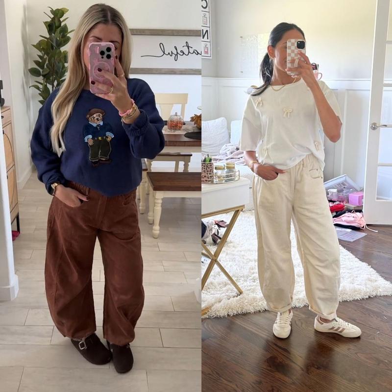 These pants are cute and great quality. The issue is the sizing. They are very narrow in the top part from the hips up and around the waist. I feel like if I sized up, the pants legs would be way too big. I returned these, unfortunately.