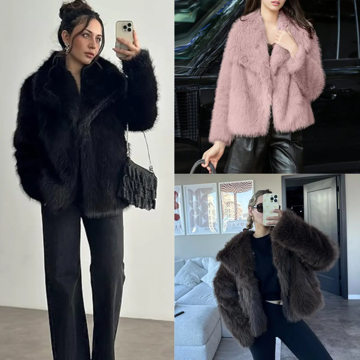 The jacket features a luxurious fluffy fur shawl collar, full lining, and snap button closure. It has two side hidden handy pockets and is easy to wear. Made of quality faux fur fabric, it's mid-weight, elegant, and chic. Stay cozy and stylish in this fashionable open-front shaggy short coat.