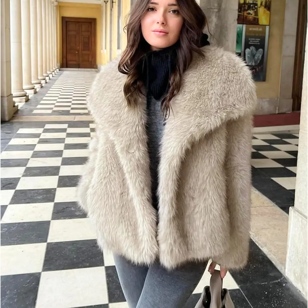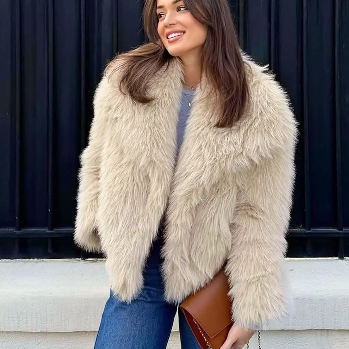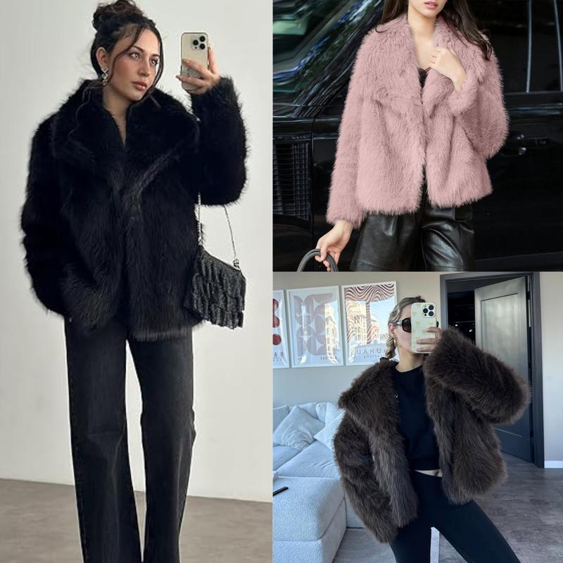 Warm up in style with this trendy lapel faux fur jacket. Crafted from eco-friendly faux fur fabric, it's fluffy and smooth, ensuring incredible comfort during fall and winter. The luxurious texture and shaggy appearance make it a standout piece. Perfect for women seeking both warmth and fashion.