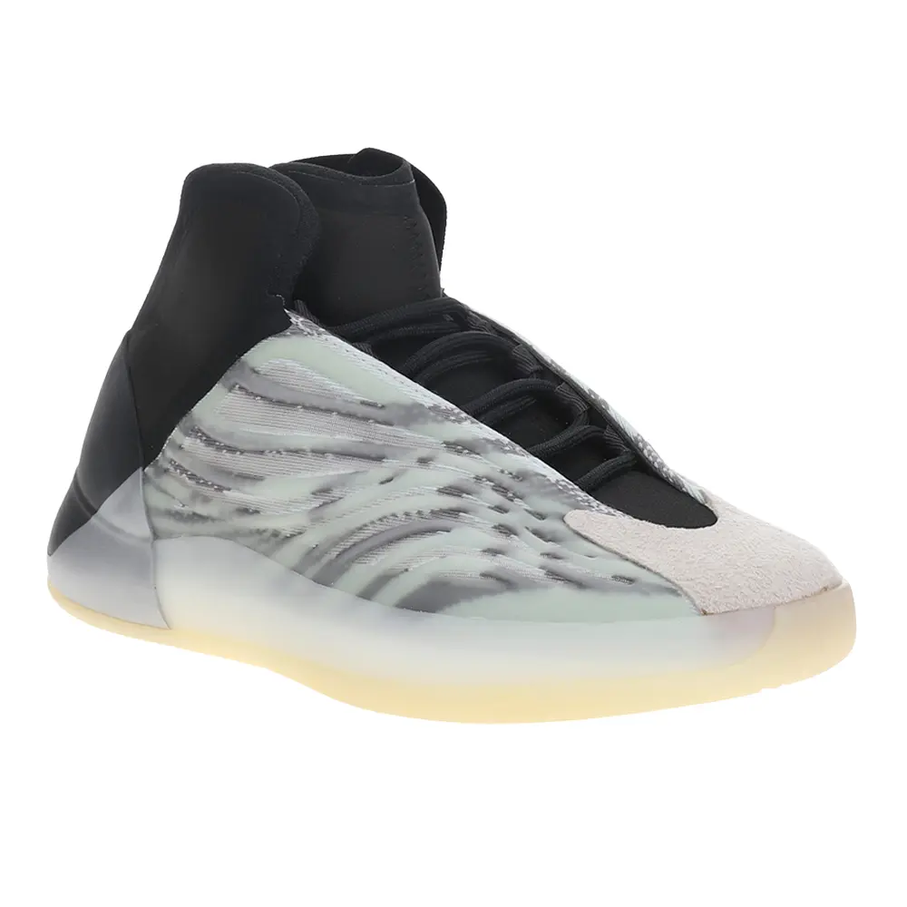 The Adidas Yeezy Basketball Quantum features an upper composed of a mesh underlay combined with an RPU cage that wraps the upper for structure and durability, while the suede toe overlay offers toe protection and durability. The knitted elastic collar provides a premium lock down feel and multi-directional support. Reflective material throughout the inner webbing and heel counter emits light in darkness. The Adidas Yeezy Basketball Quantum elevates the cushioning experience with a re-engineered full-length drop-in Boost midsole with a high-performance shank that provides optimal comfort where athletes need it most, while the herringbone rubber outsole provides superior traction for dynamic cuts and pivots.