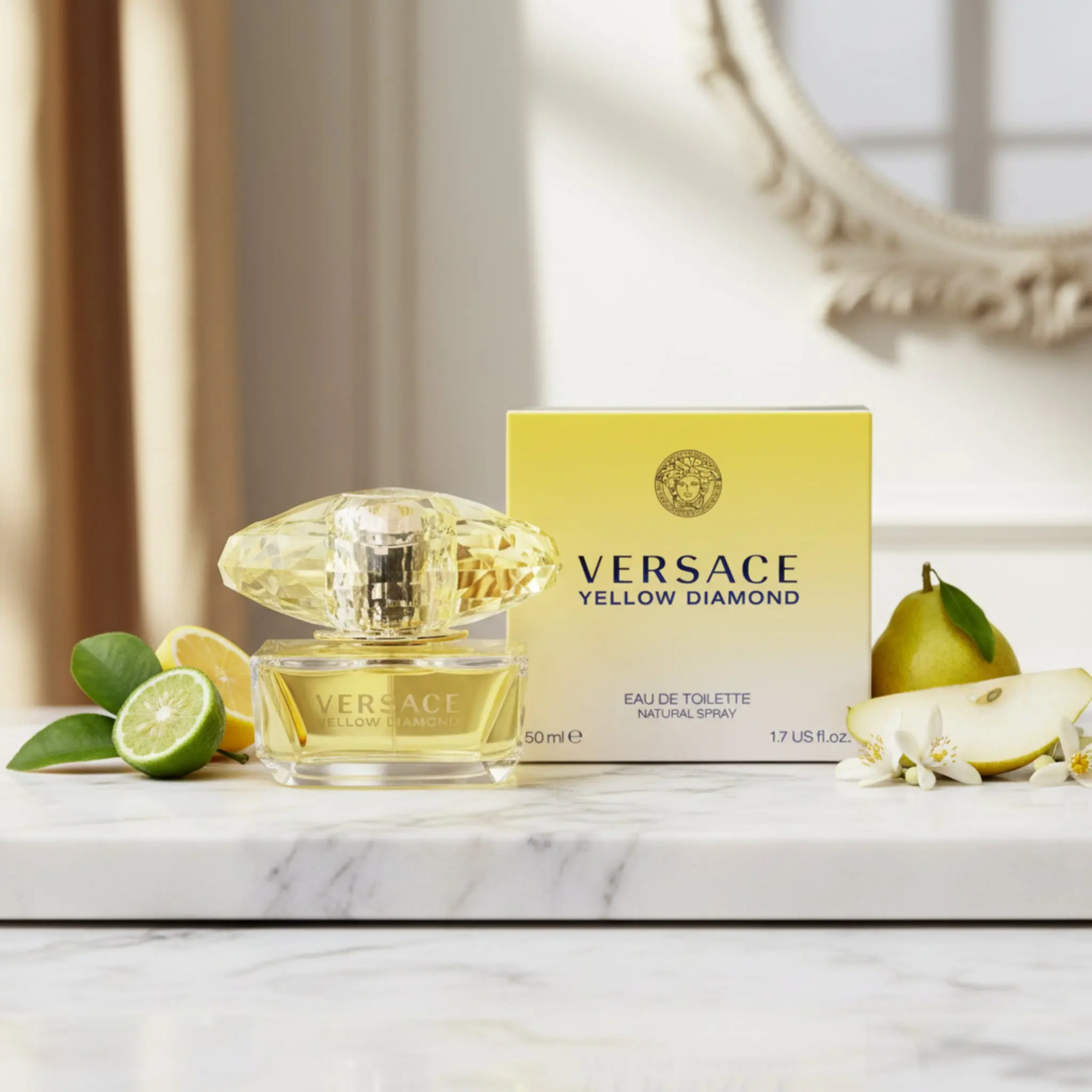 Bright, radiant and unmistakably modern, Yellow Diamond is a luminous fragrance that captures the brilliance of sunlight on skin. With a sparkling opening of citrus and juicy fruit, it transitions into a breezy floral heart before settling into a soft, elegant base of woods and musk. Designed for the woman who loves to shine with effortless sophistication, this scent brings a touch of gilded glamour to everyday wear.