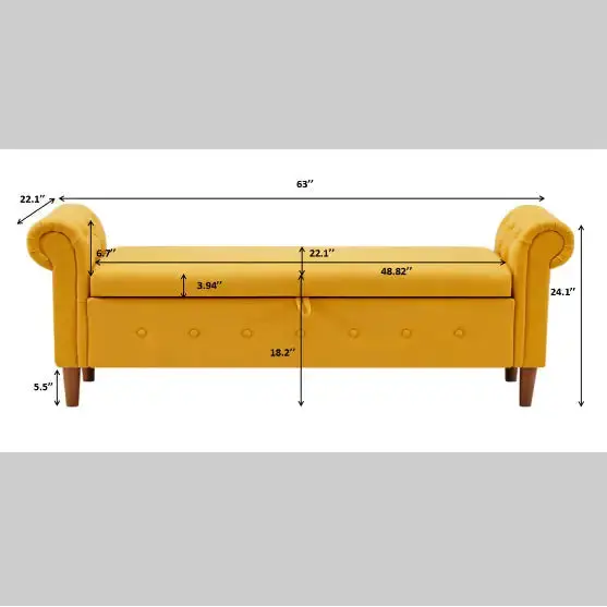 Product Specifications: Product Information Product name: Yellow Multifunctional Storage Rectangular Sofa Stool Product Code: S02100055 UPC: Product type: General item Main Color: Yellow Main Material: Linen Product dimensions Assembly Length (inches): Assembling Width (inches): Assembly Height (inches): Assemble Weight (lbs): Package size Length (inches): 49.61 Width (inches): 22.1 Height (inches): 12.6 Weight (lbs): 76.1