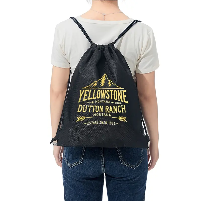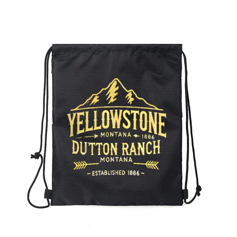 Yellowstone Mountain Dutton Ranch Drawstring Backpack Outdoor Adventure Hiking Bag Lightweight Sports Gym Sack Suitable for Nature Lovers Travelers Gift Idea for Christmas Thanksgiving Fathers Day and Birthday Presents Workout Sport Bags
