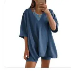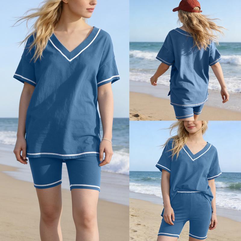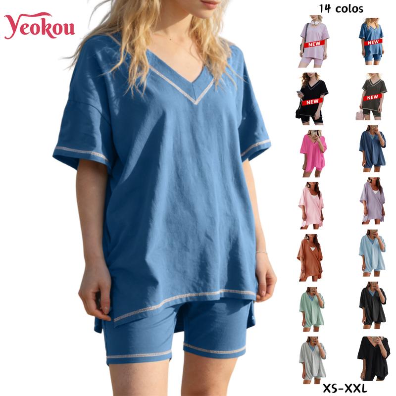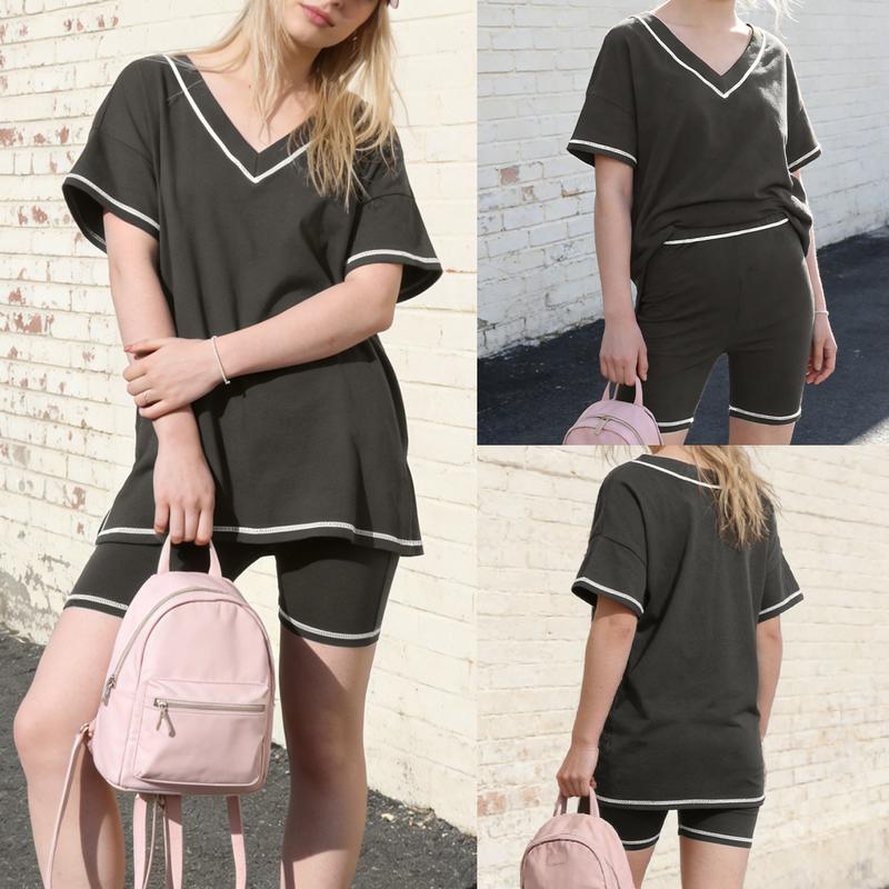 Unique Features: Our two piece tracksuit set includes a reversible oversized top with a flattering v-neckline and bodycon shorts. This womens lounge set featuring hip pockets, split side seam, short sleeves, matching with high waist elastic shorts. Wearing this sweatsuit will give you comfy feeling