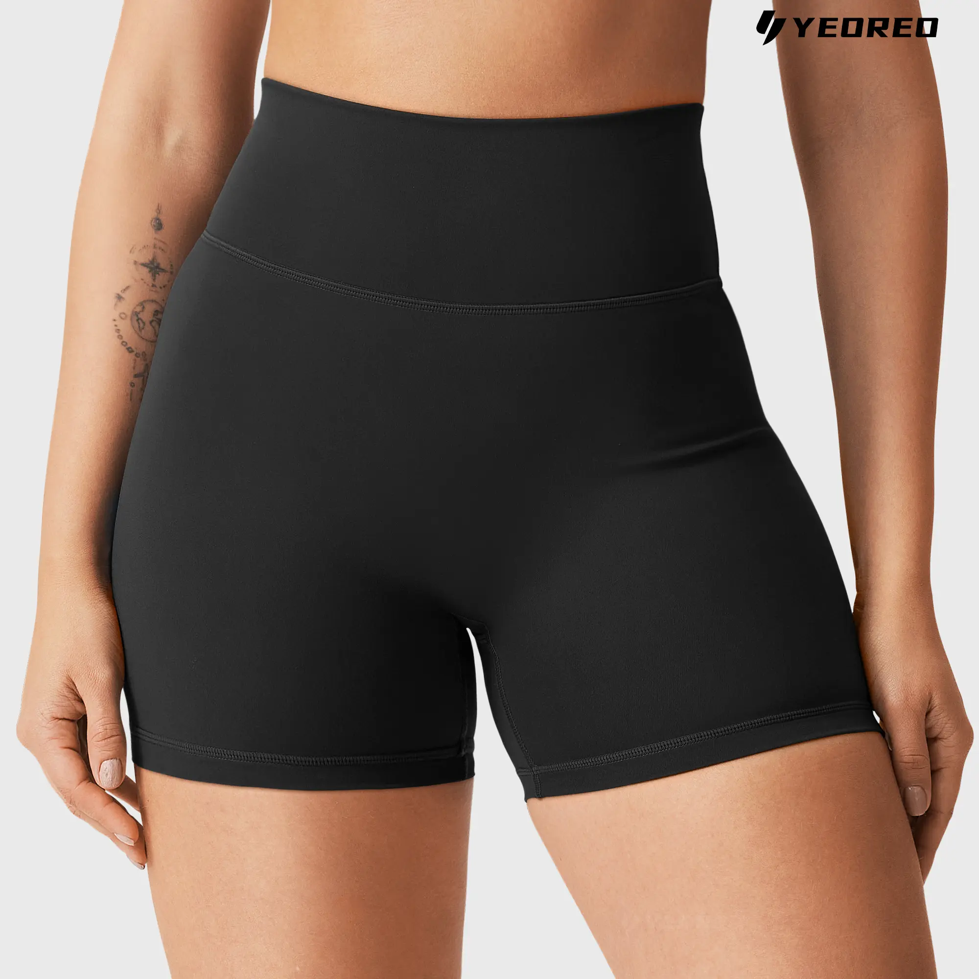 ·High Waist Yoga Shorts: YEOREO workout biker shorts have a comfortable length for biker shorts. And they don’t ride up! They have very stretchy fabric but with good compression where you need it
