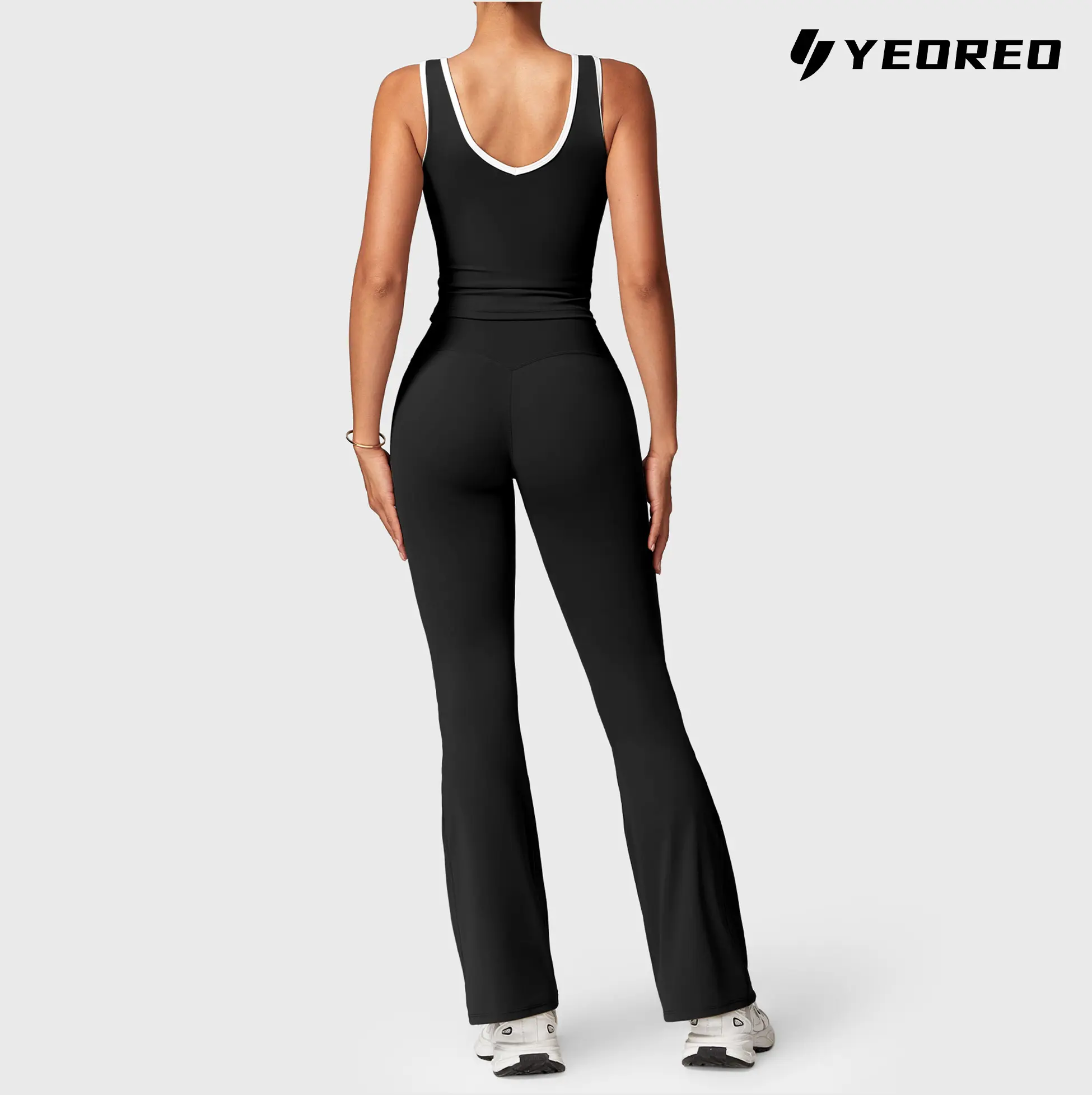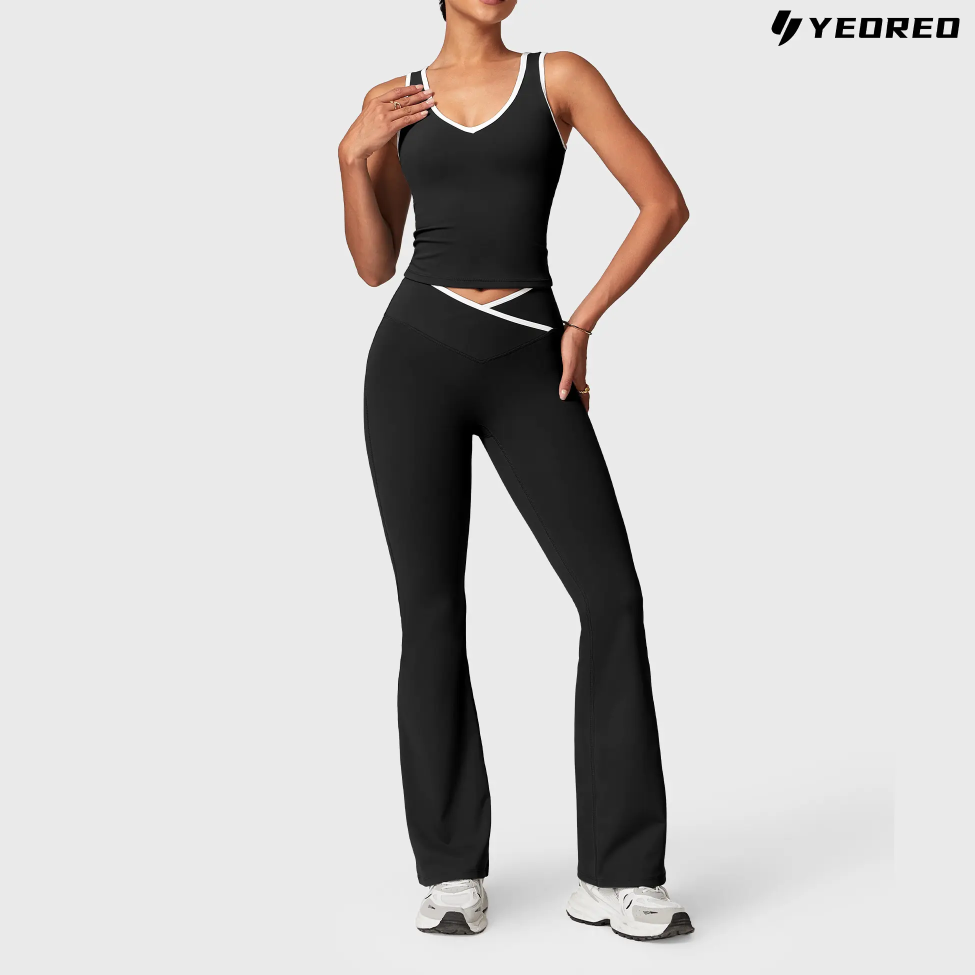 Yeoreo Contrast Trim Sports Set Crossed Waist Leggings Sports Set Women Workout Clothes Casual Comfy Breathable for Yoga Gym Workout Running