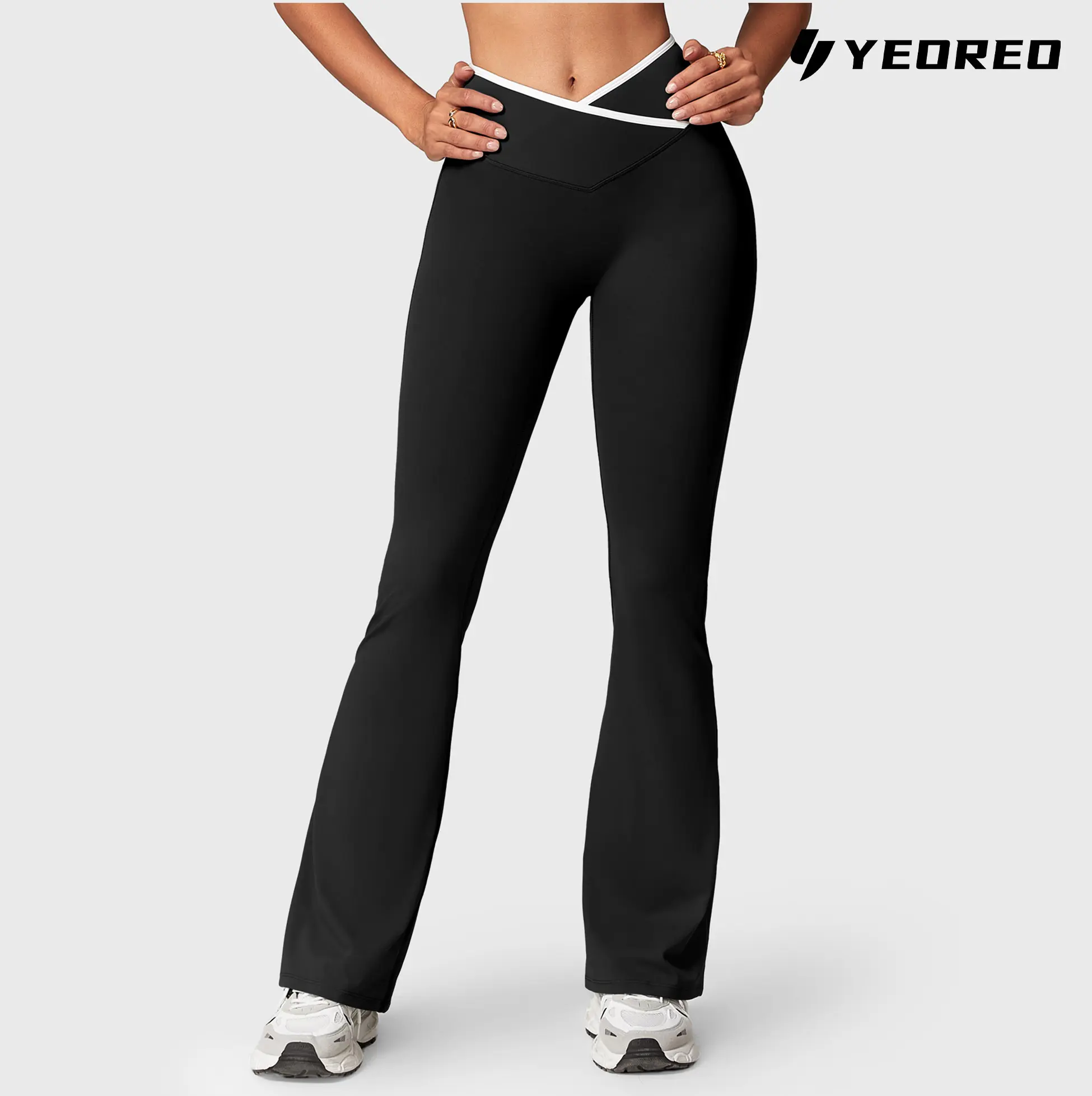 5. Yeoreo Contrast Trim Sports Set Crossed Waist Leggings Sports Set Women Workout Clothes Casual Comfy Breathable for Yoga Gym Workout Running