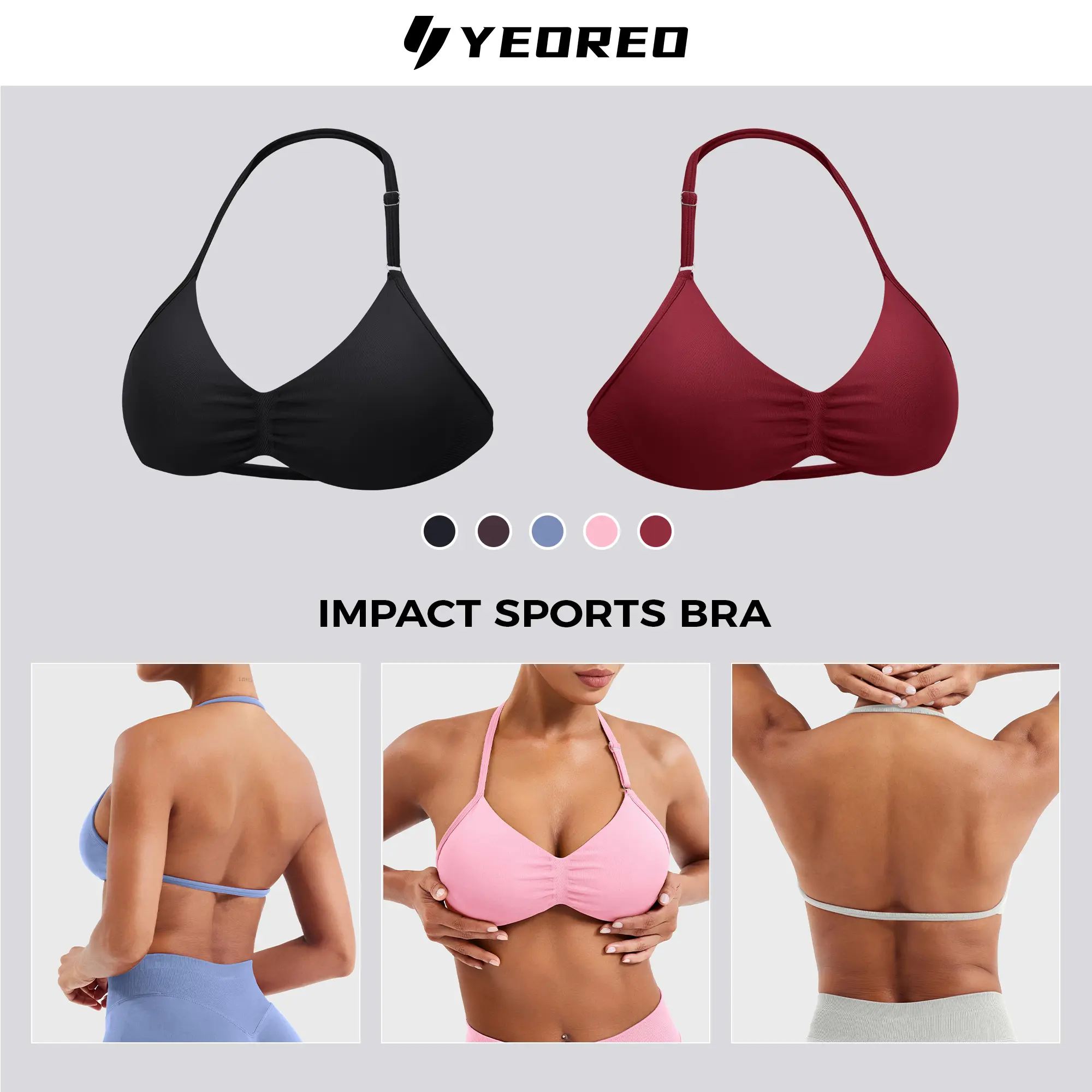 ·Adjustable Halter Design: Strappy halterneck with removable padding (Tip: For a snugger fit, consider sizing down)
