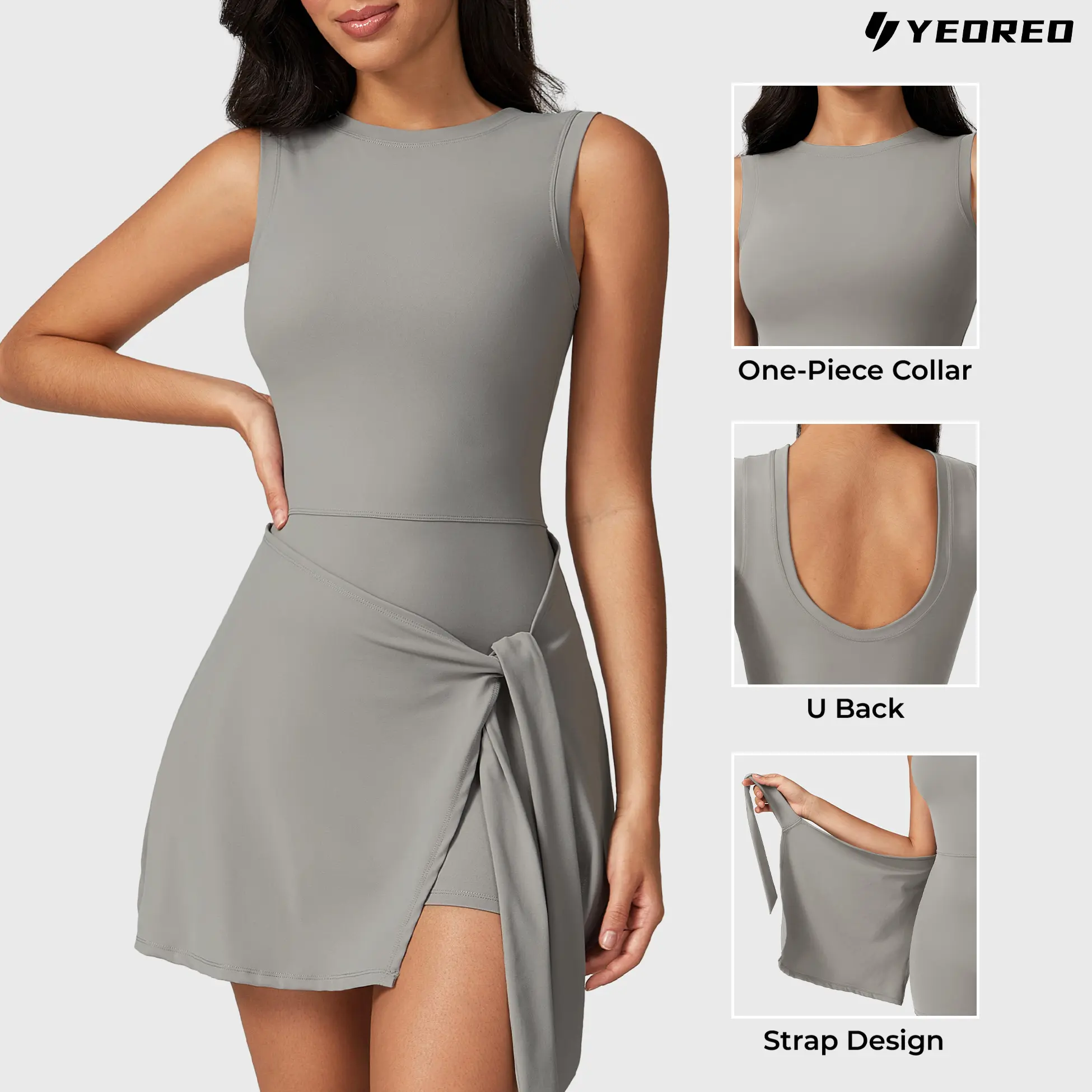 5. YEOREO Women's Tennis Skirt Sleeveless Yoga Golf Sports Skirt with Ruffle Side Slits Gym Skirt Built-in Shorts Athletic Skort