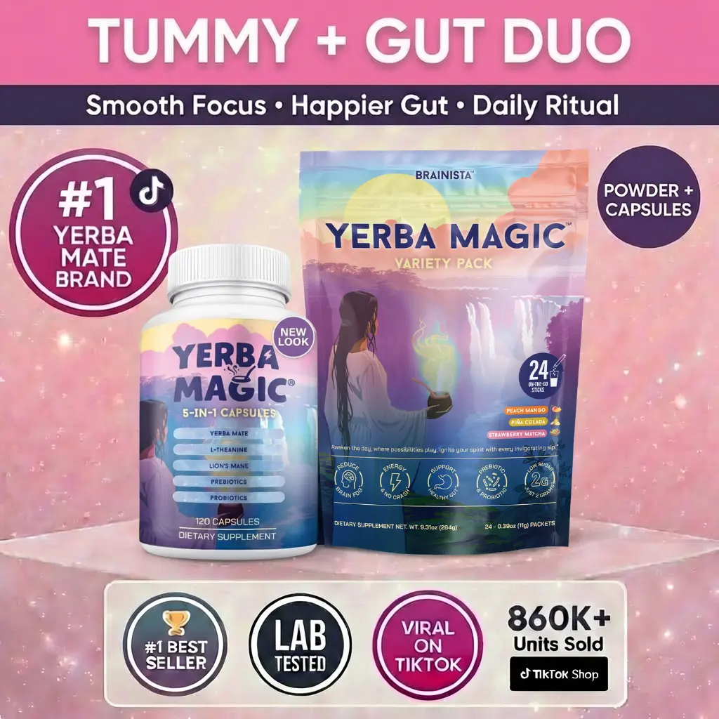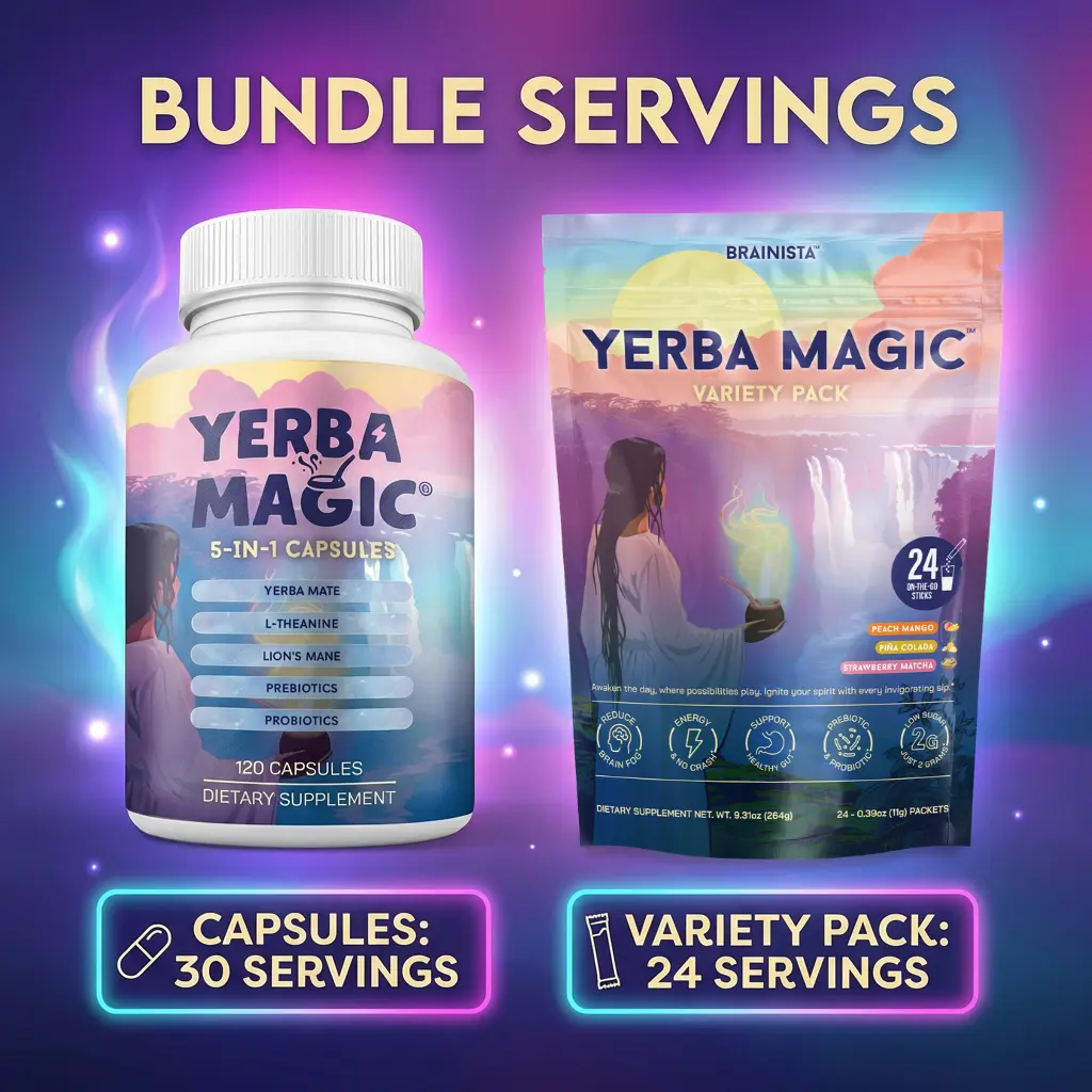 Meet the ultimate Yerba Magic bundle — combining our 5-in-1 Capsules with the Yerba Magic Variety Pack for all-day energy, focus, and gut support at home or on the go.