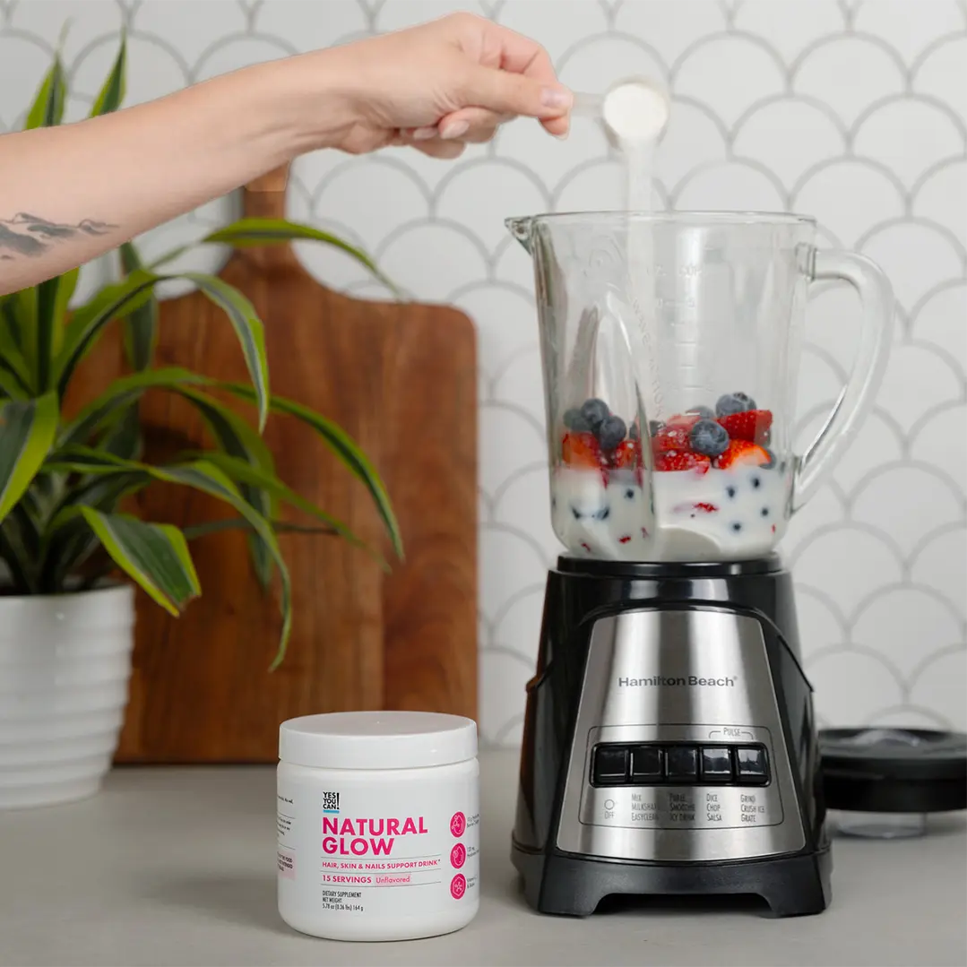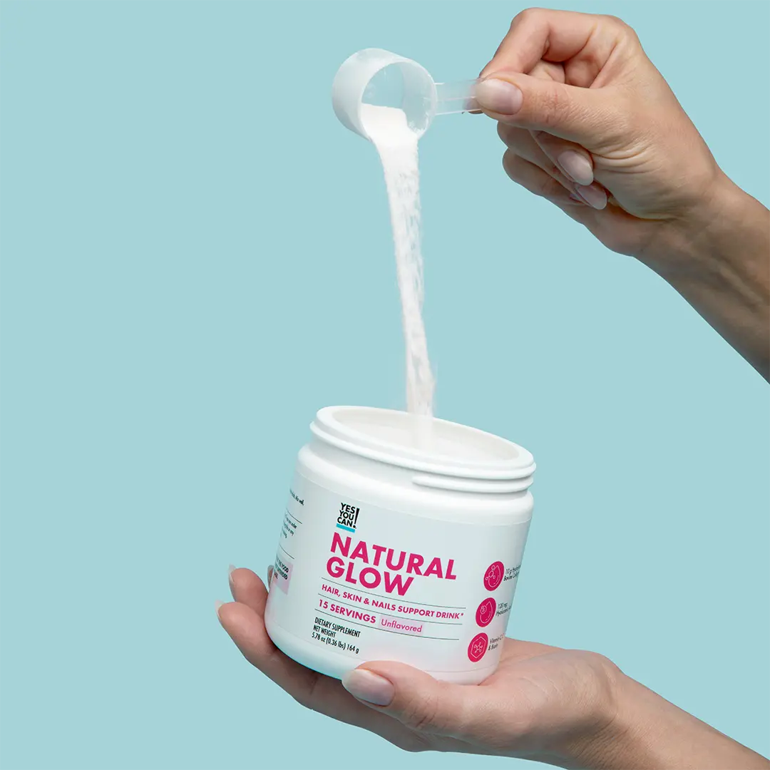 Natural Glow is your daily ritual for healthier hair, radiant skin, and stronger nails. Each scoop delivers 10 g of collagen, biotin, hyaluronic acid, and vitamins C and E to help you glow from within. Designed for easy, everyday use, it’s unflavored and blends perfectly into coffee, smoothies, or agua fresca.