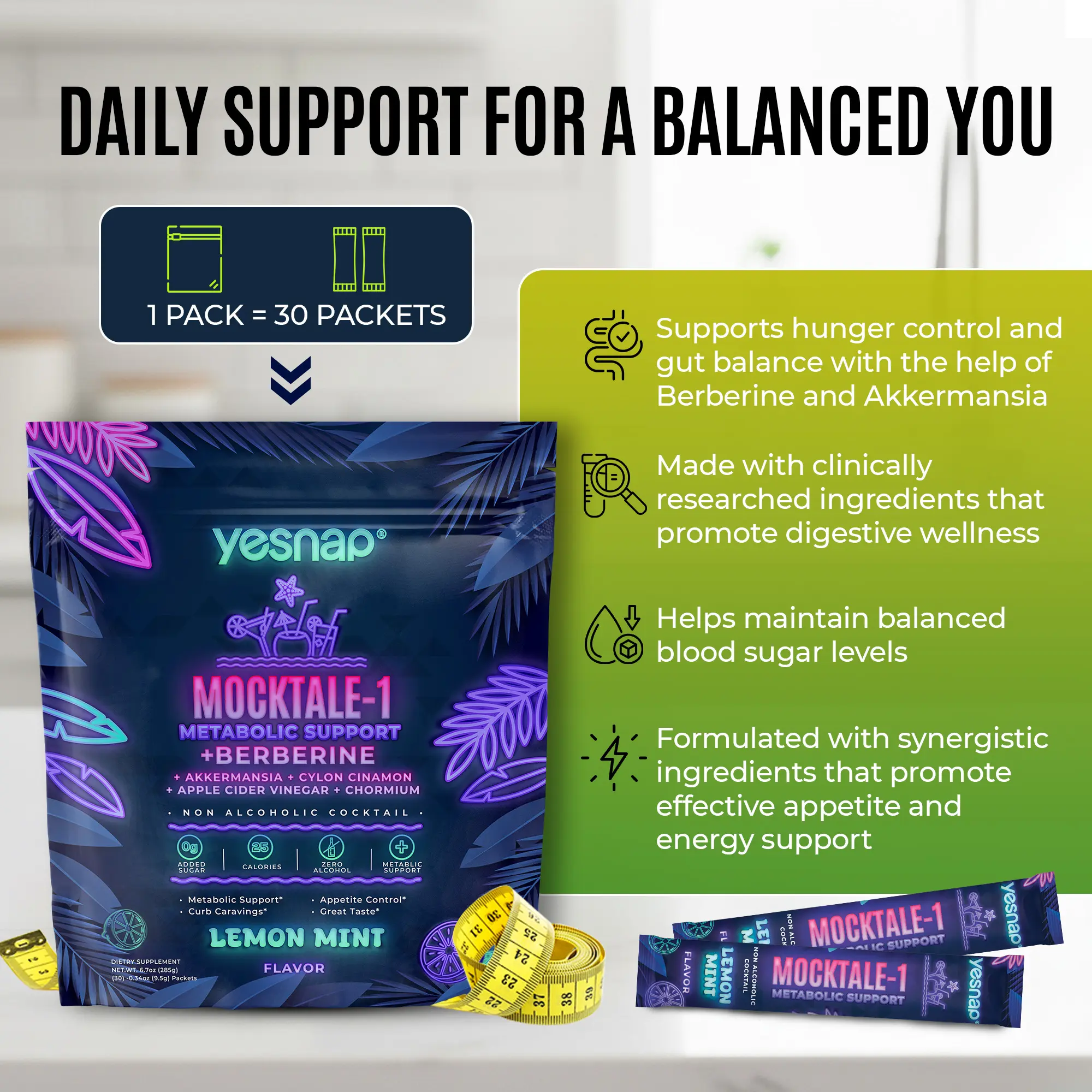 Yesnap MOCKTALE-1 Metabolic Support with Berberine & Akkermansia, Chormium, Cylon Cinamon, Apple Cider Vinegar - 30 Packets Lemon Mint Flavor Non-Alcoholic CocktailYesnap MOCKTALE-1 Metabolic Support with Berberine & Akkermansia, Chormium, Cylon Cinamon, Apple Cider Vinegar - 30 Packets Lemon Mint Flavor Non-Alcoholic CocktailYesnap MOCKTALE-1 Metabolic Support with Berberine & Akkermansia, Chormium, Cylon Cinamon, Apple Cider Vinegar - 30 Packets Lemon Mint Flavor Non-Alcoholic CocktailYesnap MOCKTALE-1 Metabolic Support with Berberine & Akkermansia, Chormium, Cylon Cinamon, Apple Cider Vinegar - 30 Packets Lemon Mint Flavor Non-Alcoholic Cocktail