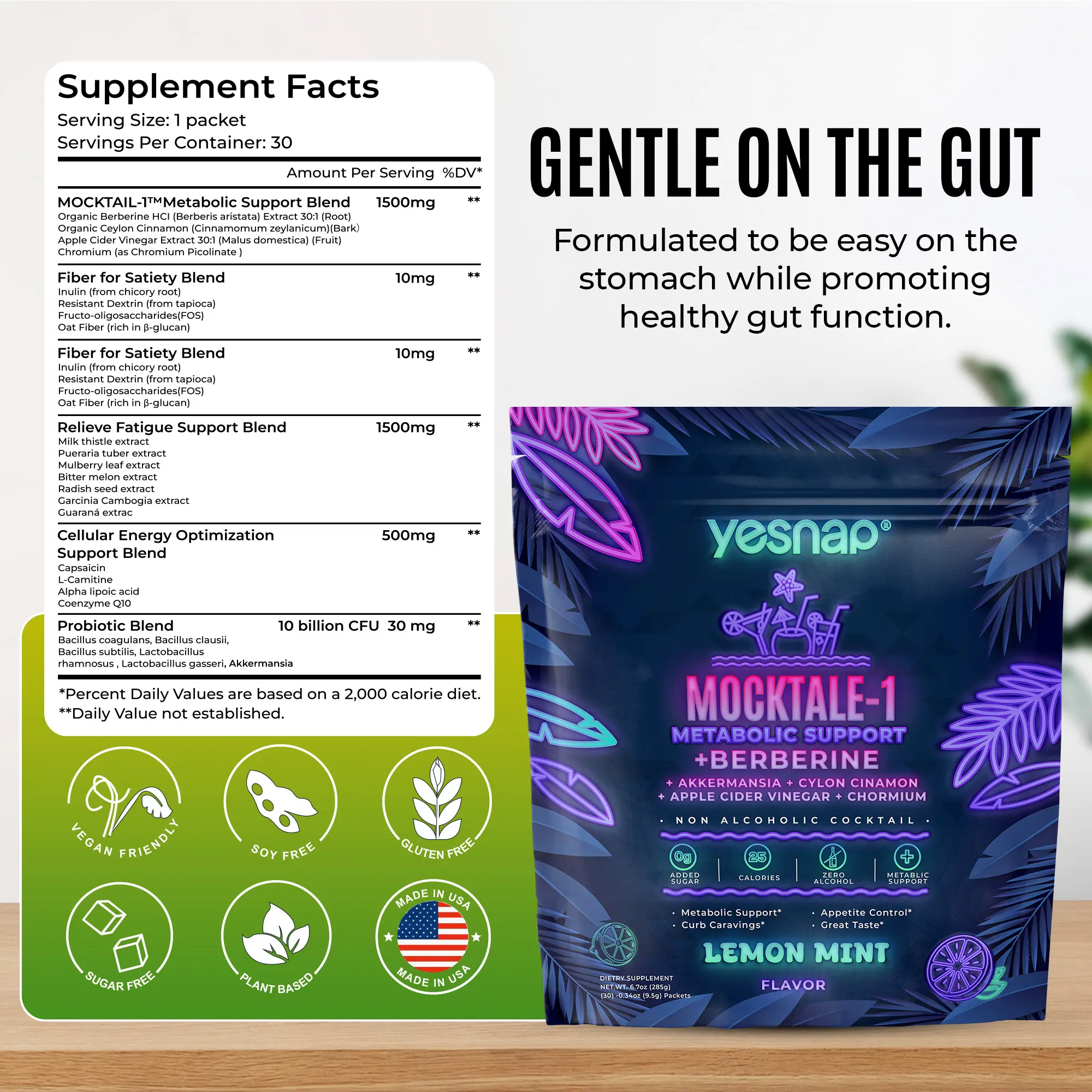 Yesnap MOCKTALE-1 Metabolic Support with Berberine & Akkermansia, Chormium, Cylon Cinamon, Apple Cider Vinegar - 30 Packets Lemon Mint Flavor Non-Alcoholic Cocktail | Powdered Supplement Drink MixYesnap MOCKTALE-1 Metabolic Support with Berberine & Akkermansia, Chormium, Cylon Cinamon, Apple Cider Vinegar - 30 Packets Lemon Mint Flavor Non-Alcoholic Cocktail | Powdered Supplement Drink MixYesnap MOCKTALE-1 Metabolic Support with Berberine & Akkermansia, Chormium, Cylon Cinamon, Apple Cider Vinegar - 30 Packets Lemon Mint Flavor Non-Alcoholic Cocktail | Powdered Supplement Drink Mix