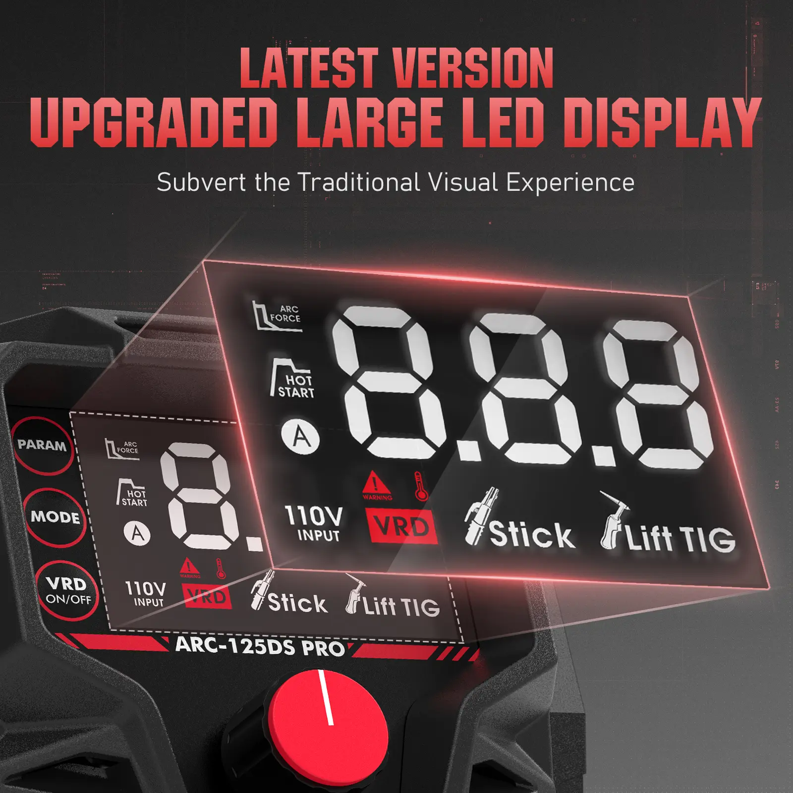 ·Provides clear visibility of key data, including current, electrode dimensions, function mode, and welding mode.