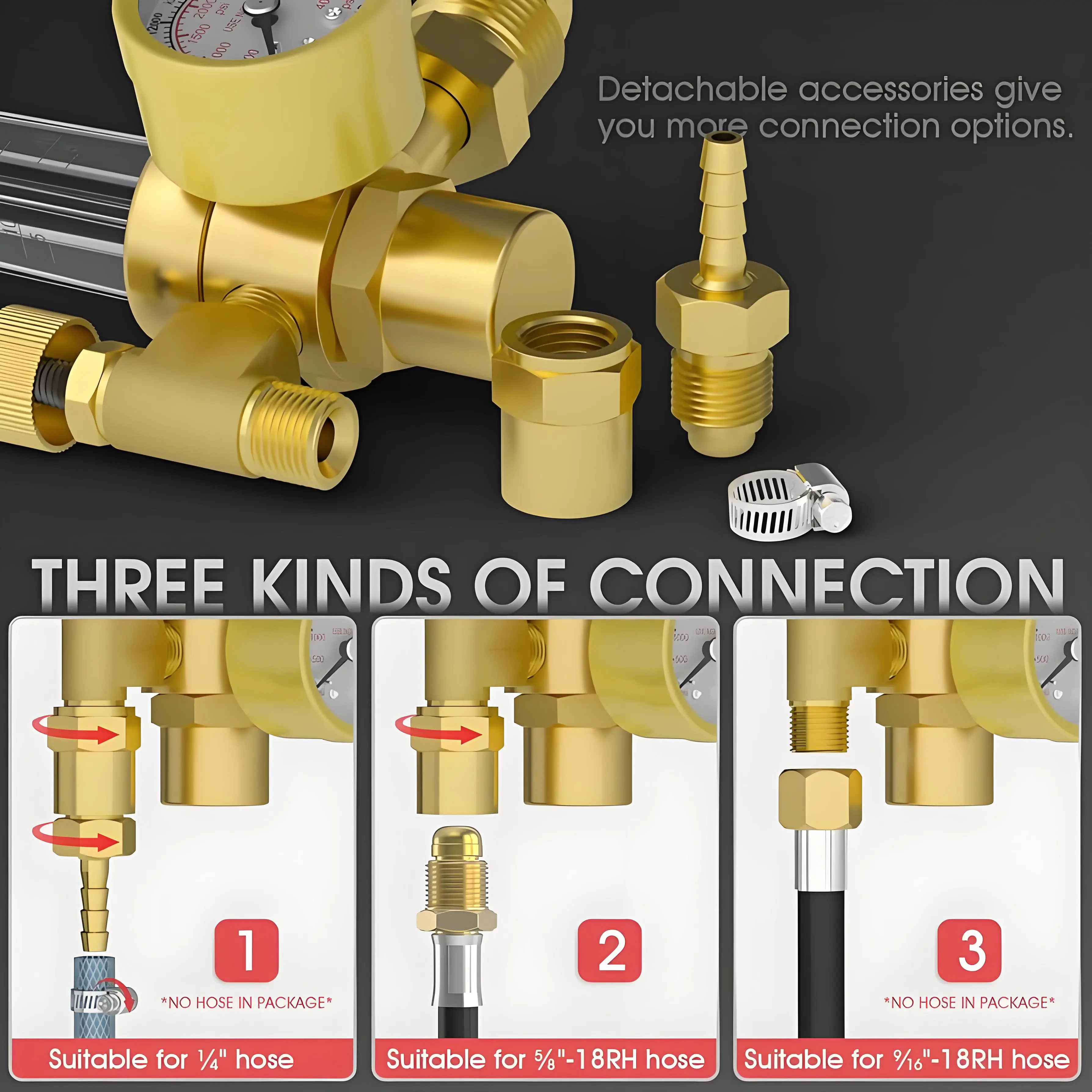 ¡3/8"-18 RH hose, ideal for larger, high-flow gas systems.(Hose NOT Included)