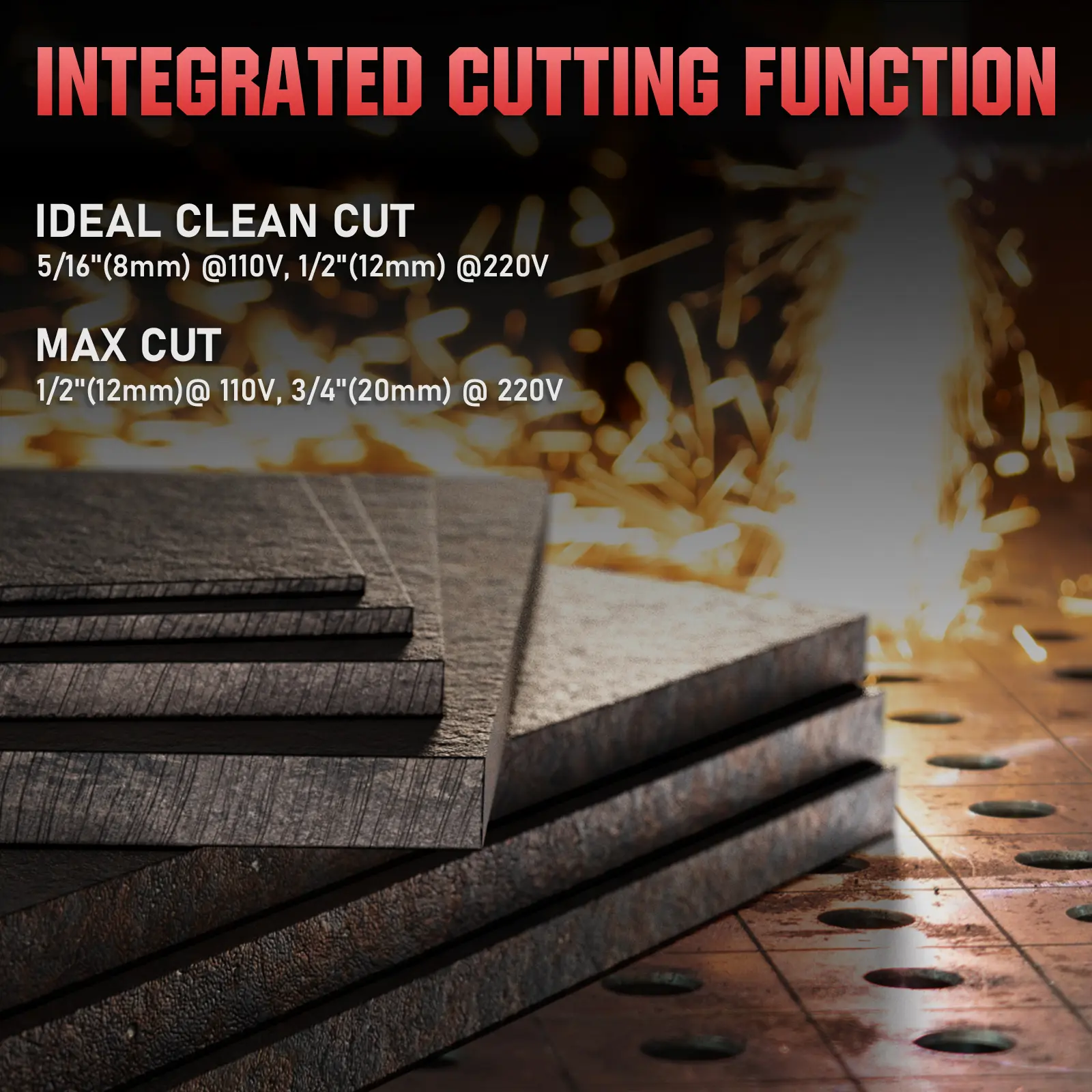·Adjustable 20-50A output to cleanly slice through 1/2" (12mm) steel and handle maximum thicknesses up to 3/4" (20mm) on 220V.