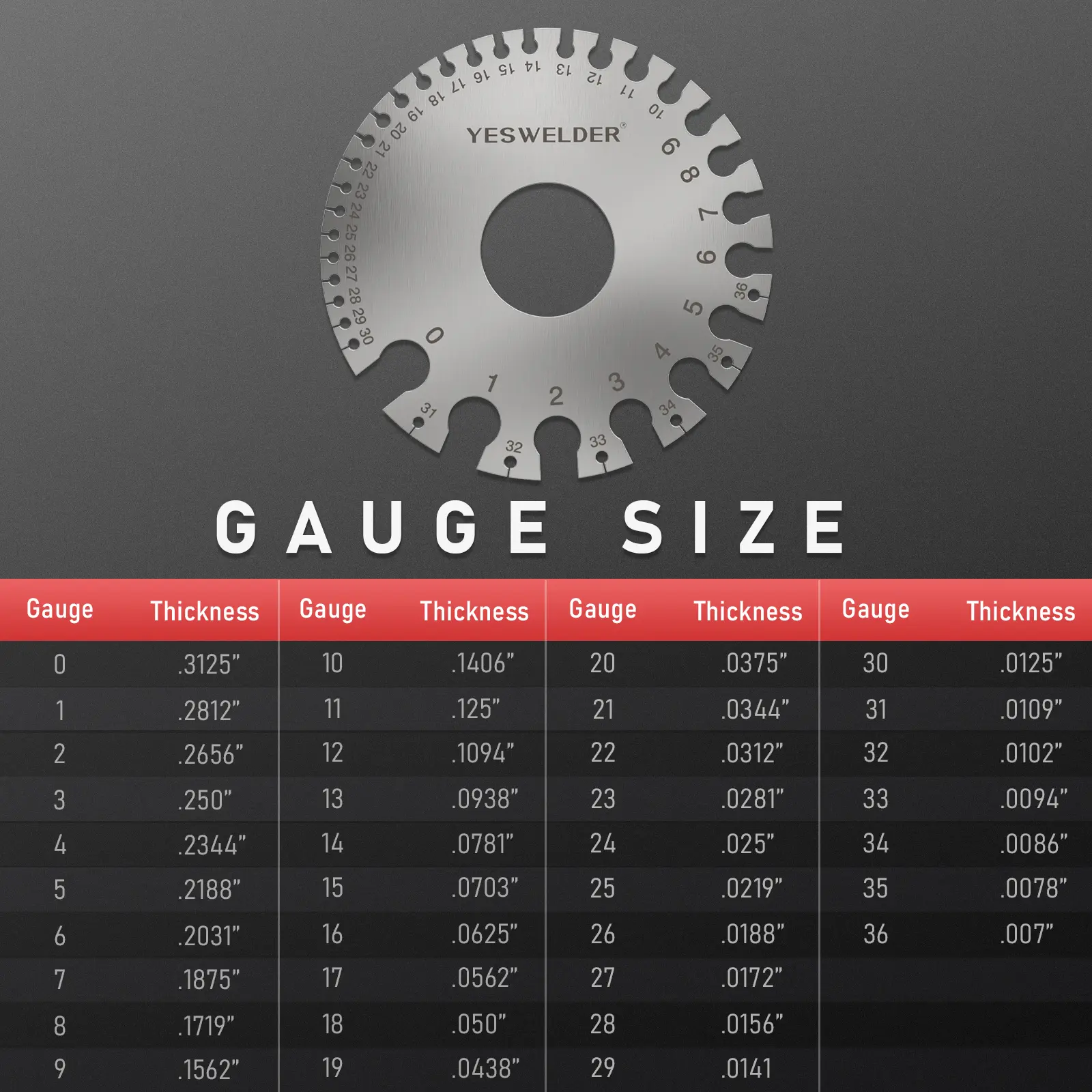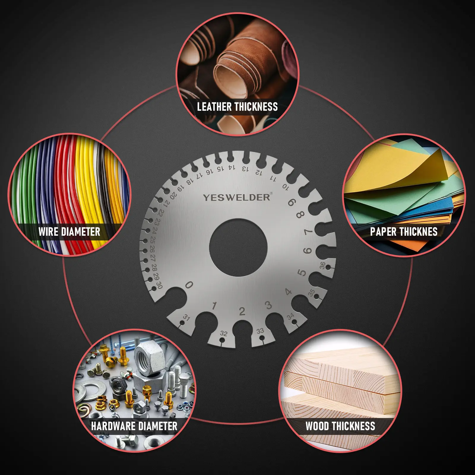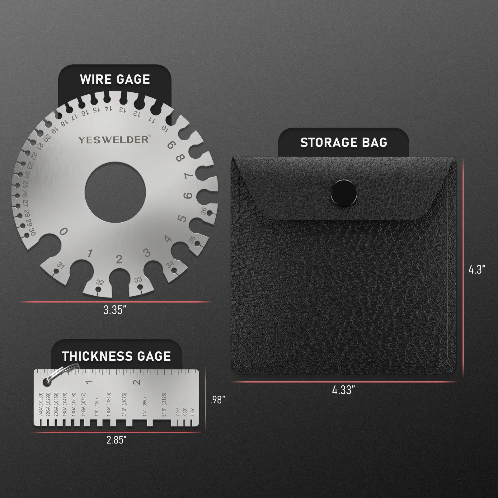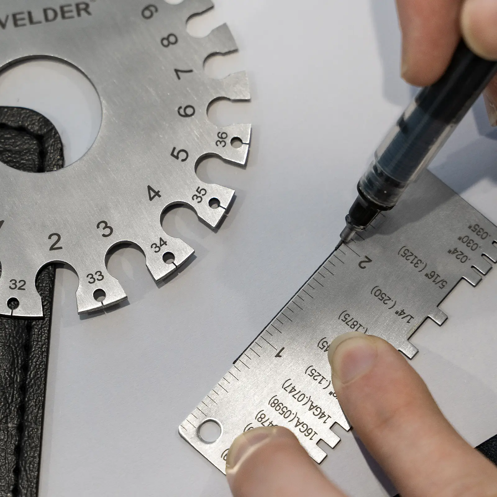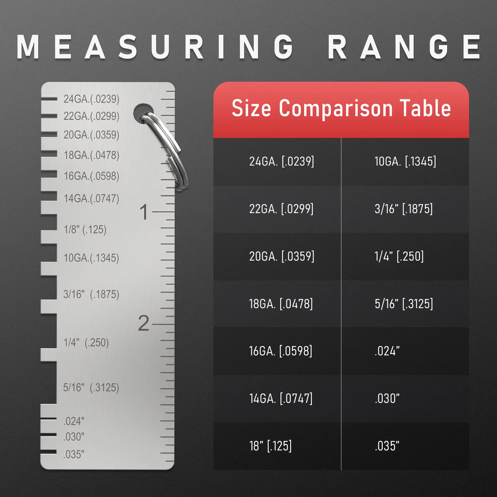 ·Dual-sided round wire gauge: gauging uncoated sheet, plate iron and steel; leather, paper, wood, bolt and more;