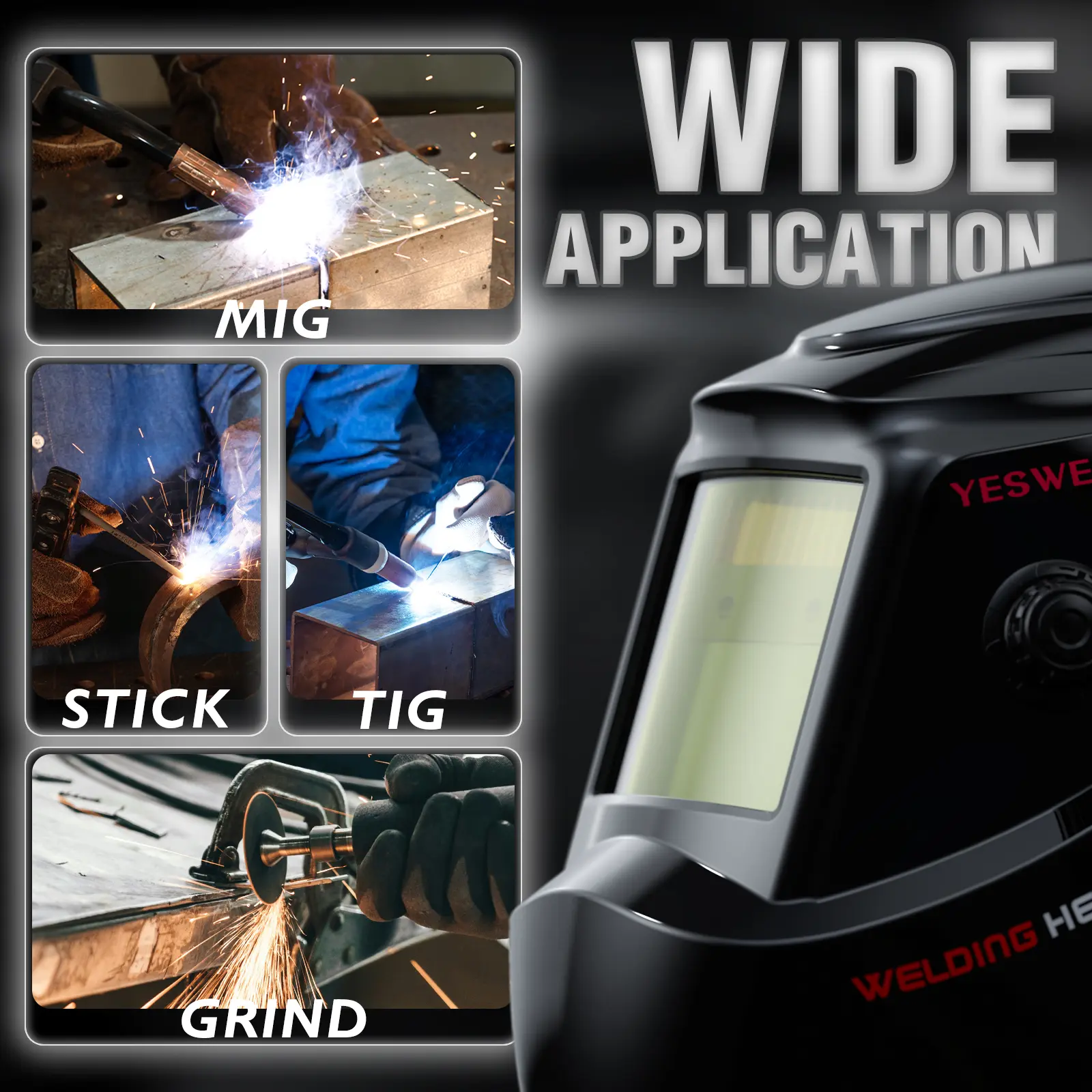 ·Seamlessly switch between Weld (DIN 9-13), Cut (DIN 5-9), and Grind (DIN 4) modes without changing helmets.