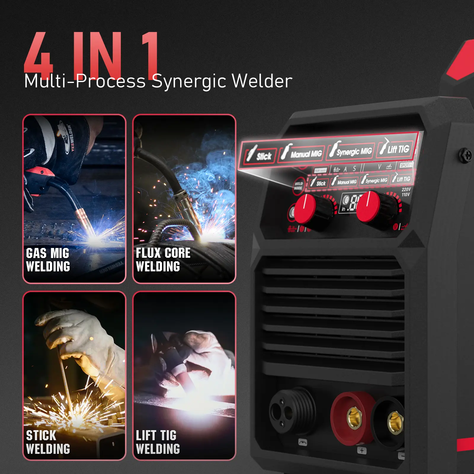 ·Seamlessly switches between Gas MIG, Flux-Cored MIG, Lift TIG, and Stick (MMA) welding to tackle various projects with this compact machine.