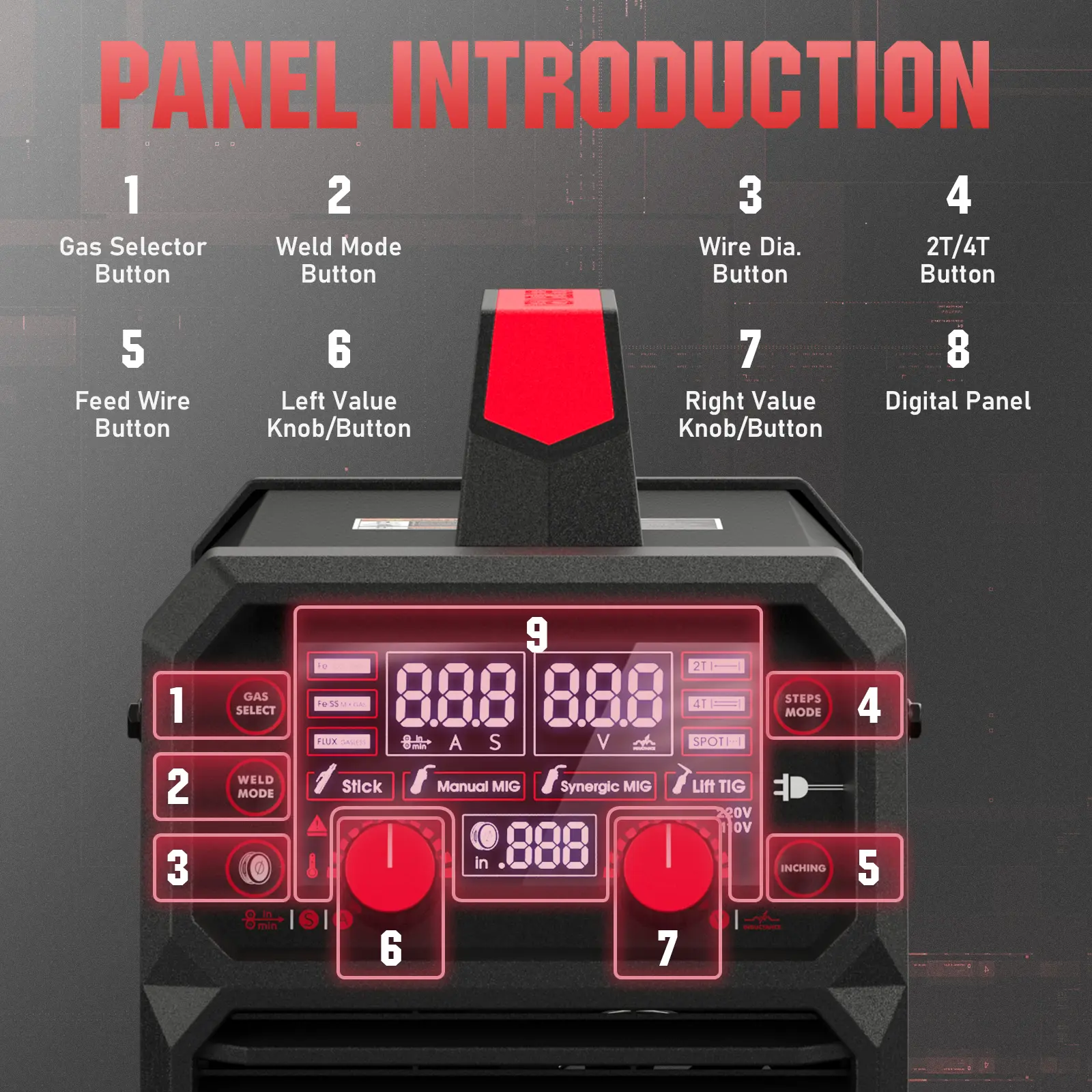 ·Manual MIG: Offers full control to set the wire speed and voltage precisely to your needs, making it a versatile tool for any skill level.