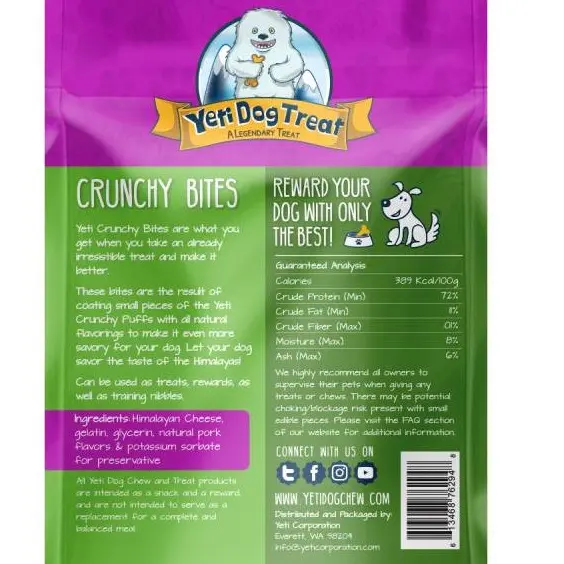 PERFECT BITE-SIZE TREAT OR REWARD FOR YOUR DOGS: There really is no better way to reward your dog than with a healthy, tasty, and irresistible Pork Crunchy Bites from Yeti. Not only this, It's a ridiculously scrummy bite-size treat perfect for training.