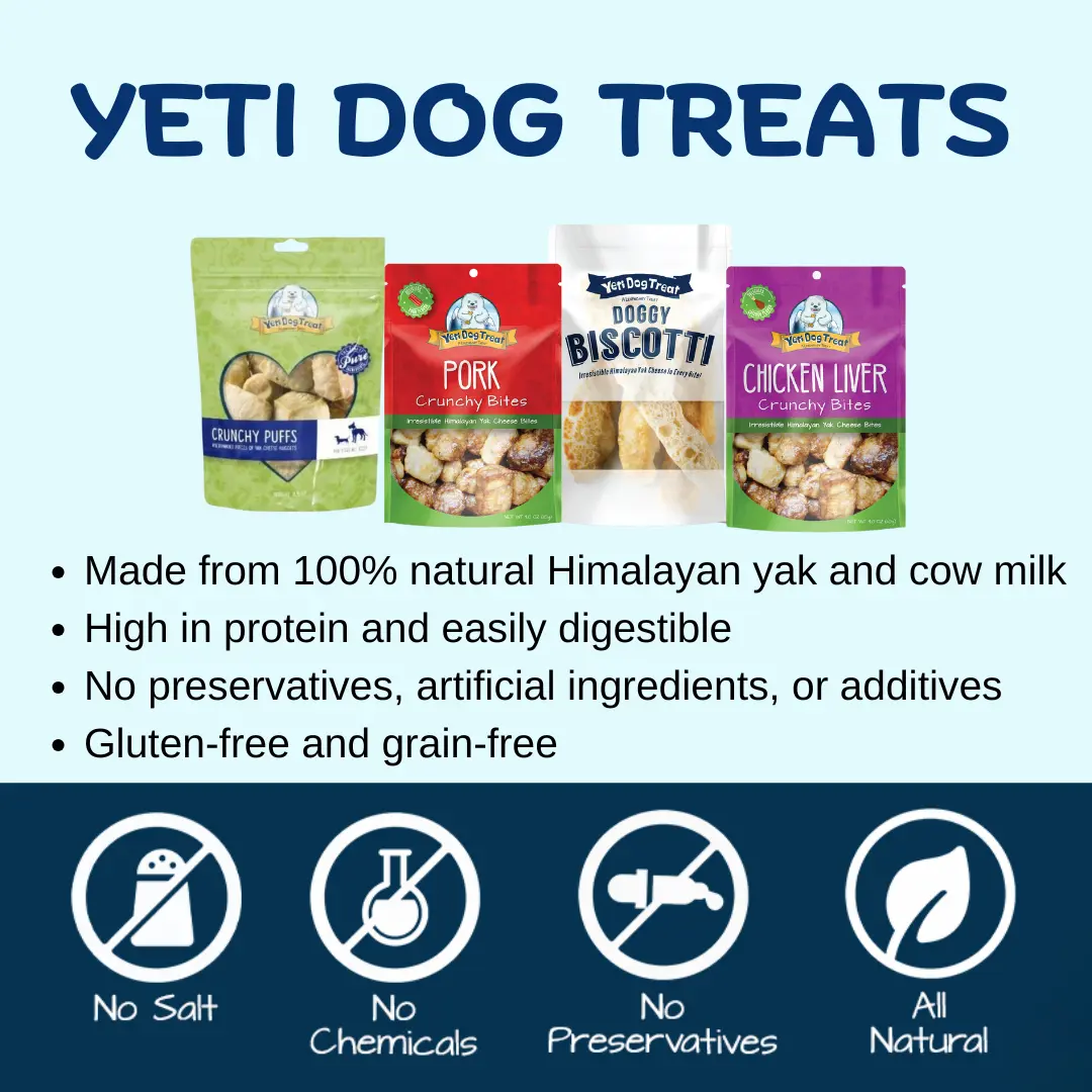 HEALTHY AND DIGESTIBLE TREATS FOR YOUR DOGS: Give your best bud a treat he’ll crave with the Yeti Pork Crunchy Bites Yak Cheese Dog Treats! These all-natural chews are made from hardened Cow and Yak milk cheese coated in an irresistible all-natural flavoring. They’re easily digestible and contain high amounts of protein and fewer carbs. They don’t contain salt, and they won’t splinter. Paw-fect for sensitive stomachs!