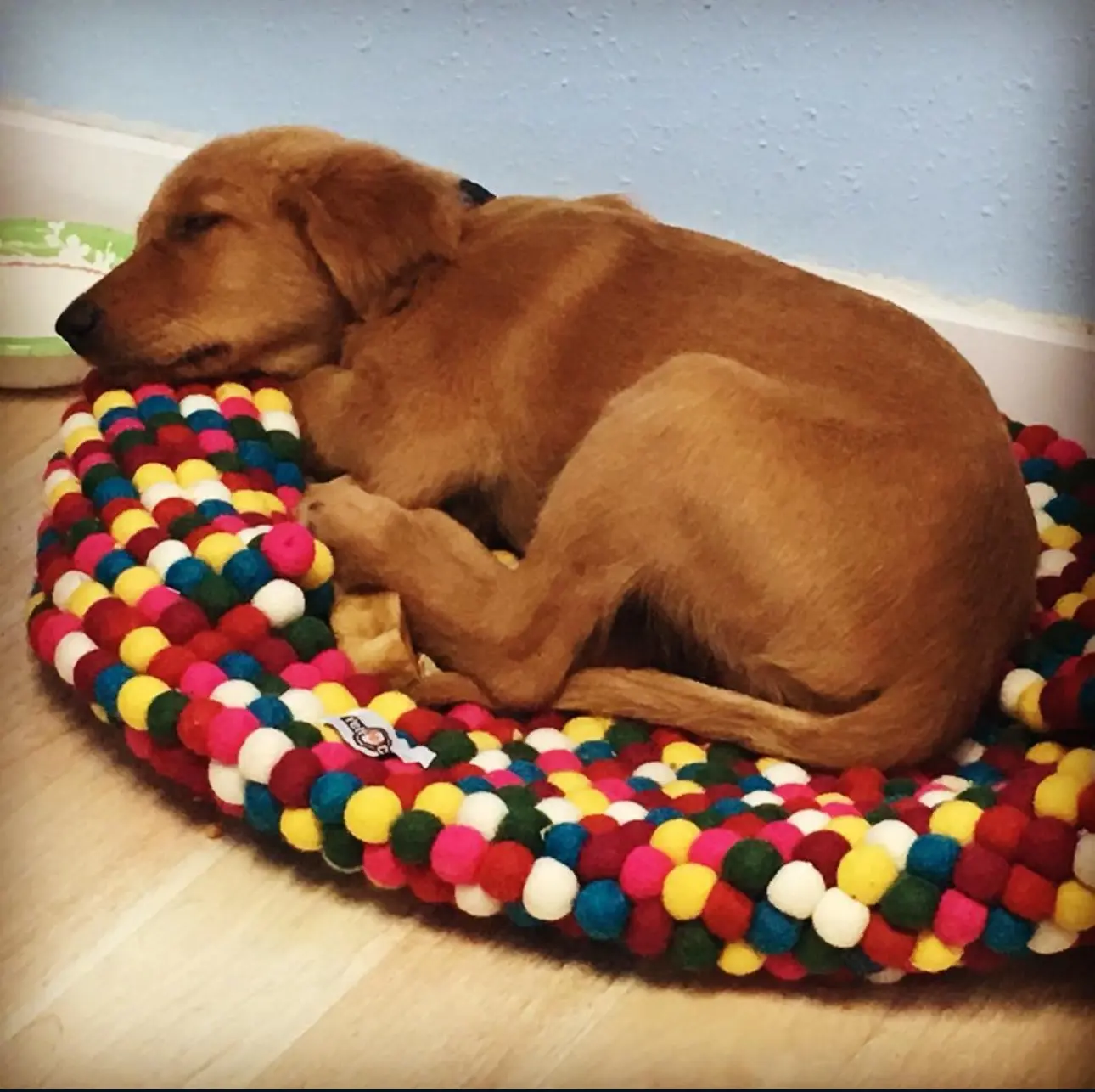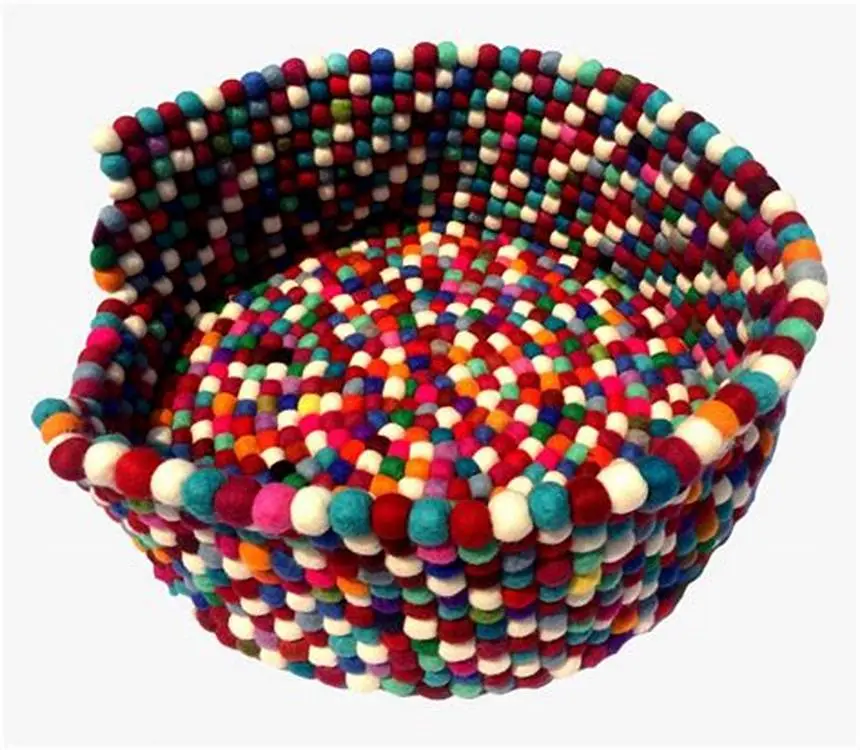 Our Yeti Felt Mat is handmade using thousands of small colorful felt balls sewn together. The soft New Zealand Merino Wool provides comfort year-round for your dog. Versatile may be used as a mat or fold to a bed.