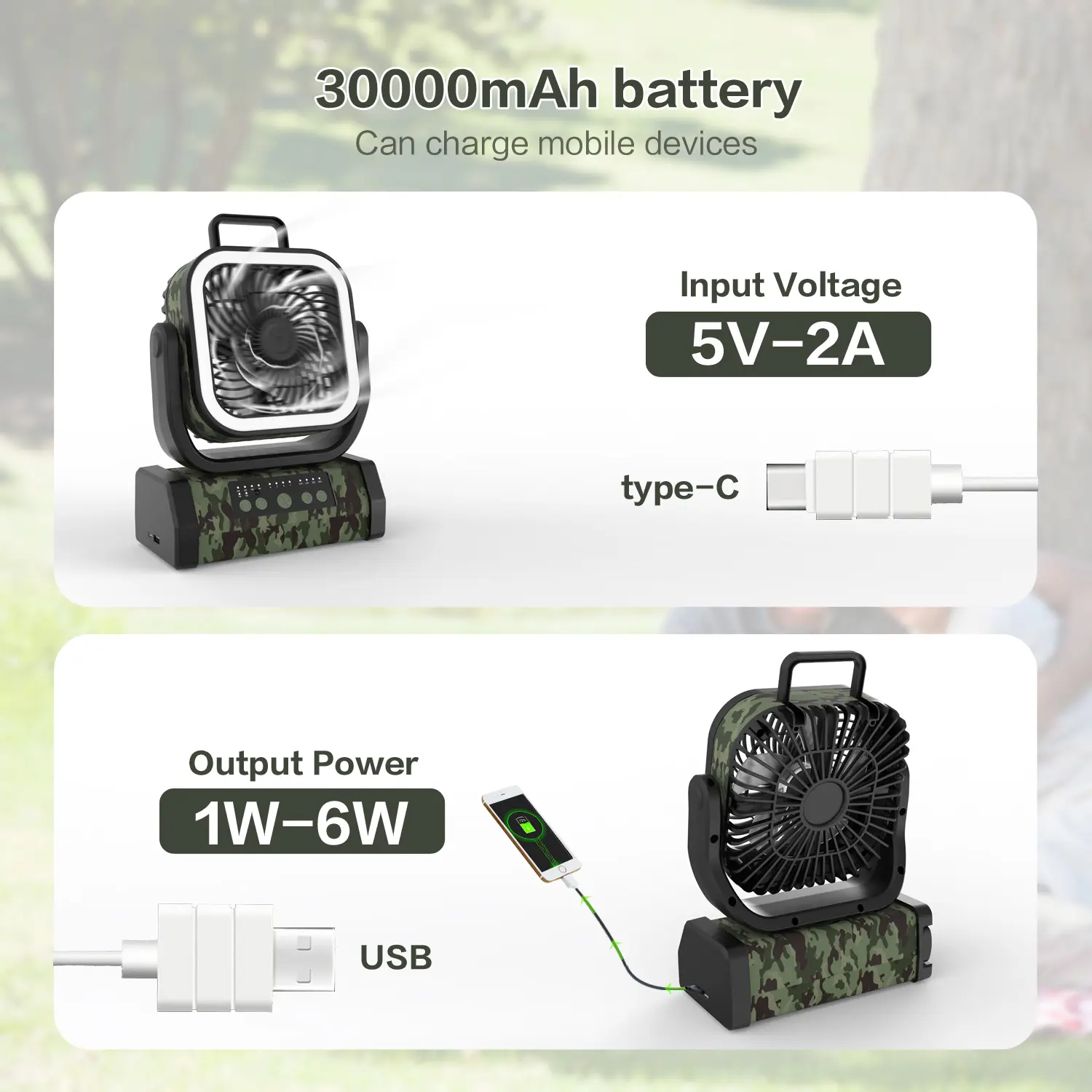 ·Powerful Battery: Equipped with a 30000mAh rechargeable battery, ensuring long-lasting use. Perfect for camping and travel.