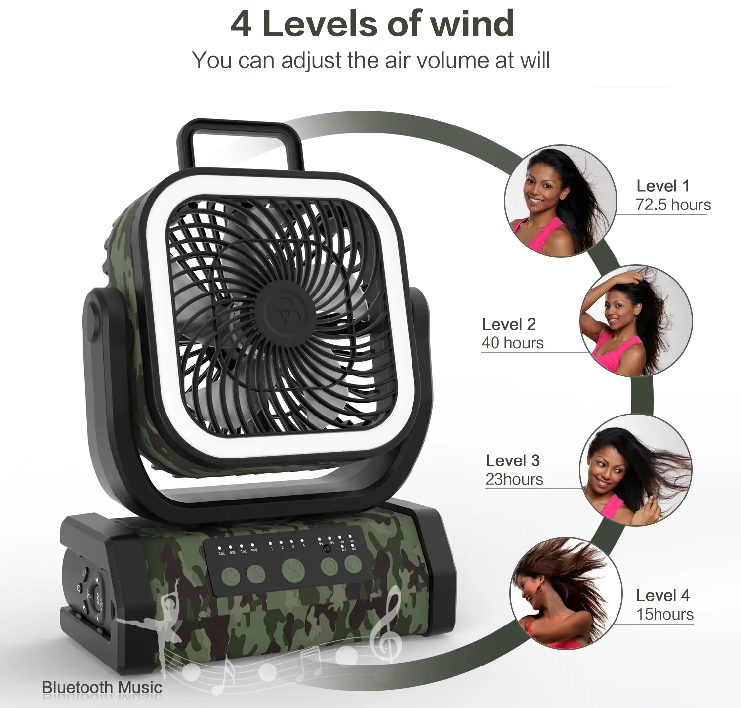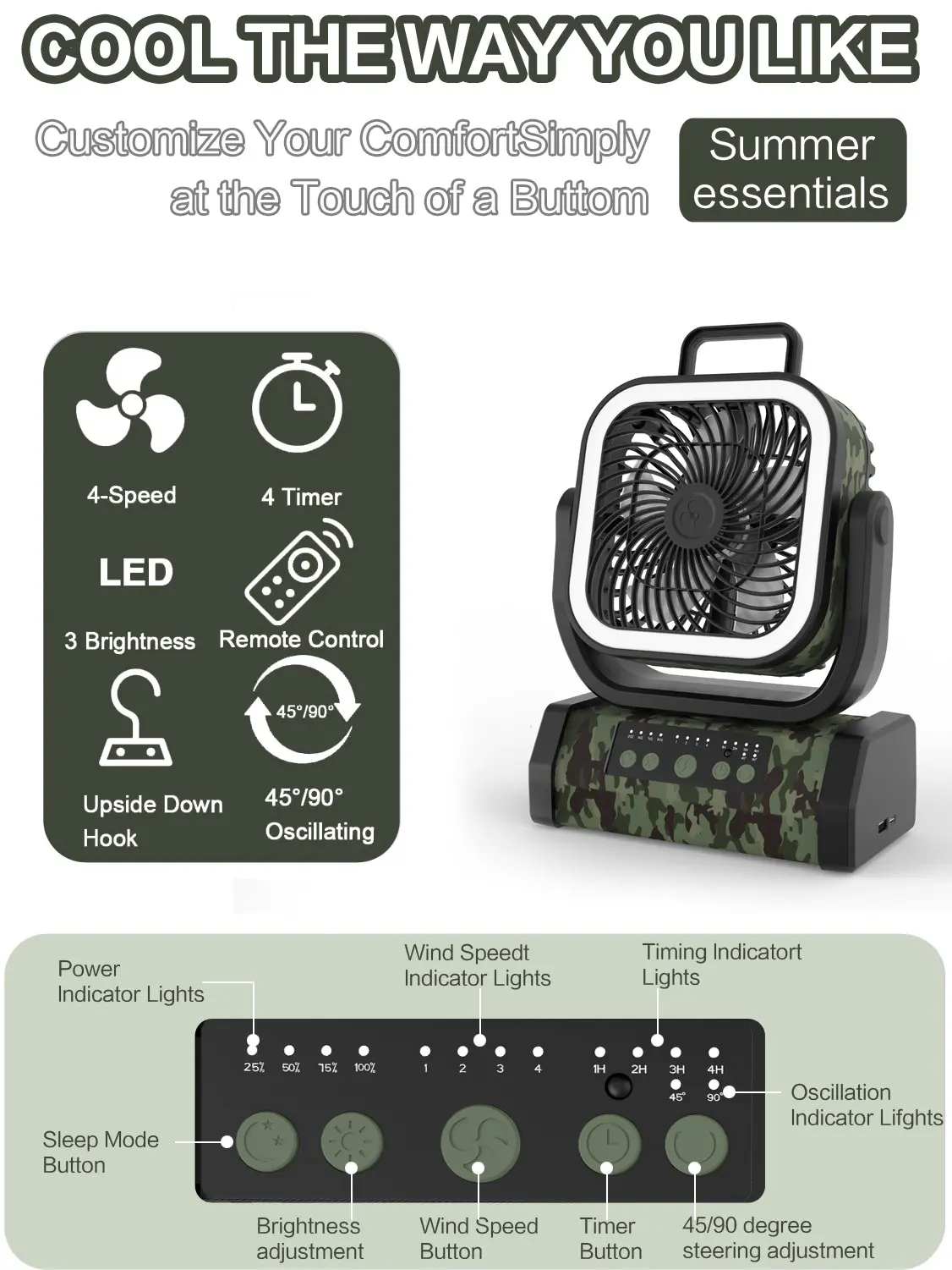 This multifunctional fan is ideal for indoor and outdoor activities. It's perfect for camping, tenting, and traveling. The fan's design allows it to be used in different environments, making it a versatile addition to your outdoor gear. Enjoy the convenience of a remote control for easy operation.
