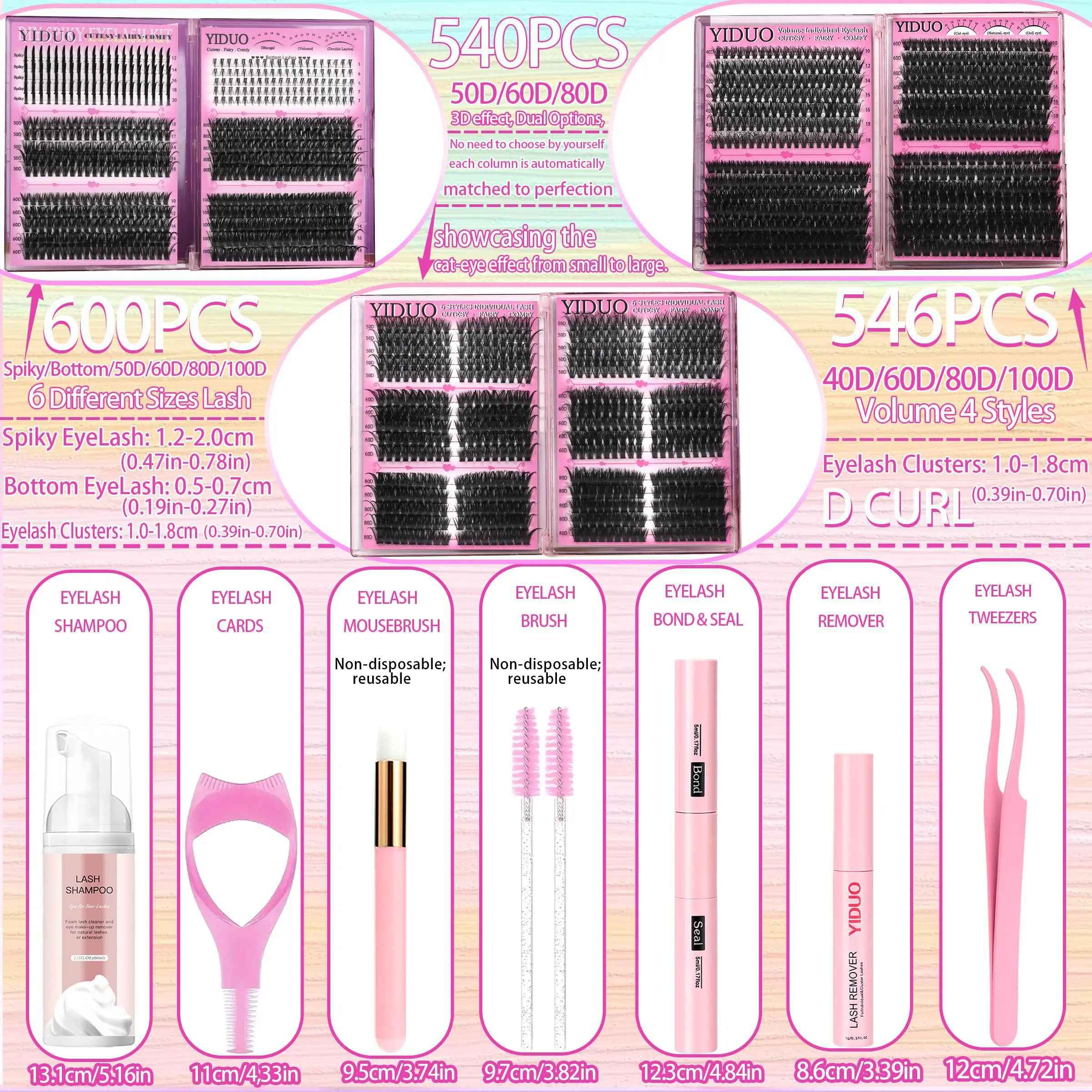 16 Styles Lash Clusters Kit, Diy Eyelash Extensions, Volume Individual Lashes, Mega/ultra/Dramatic/Volume/Spikes/Bottom Lashes WaterProof Lash for Beginners & Pros, Soft Comfortable Easy Apply Natural Look for Daily Makeup