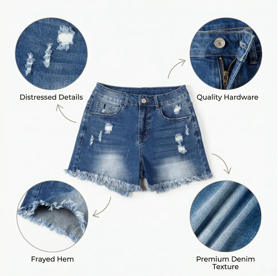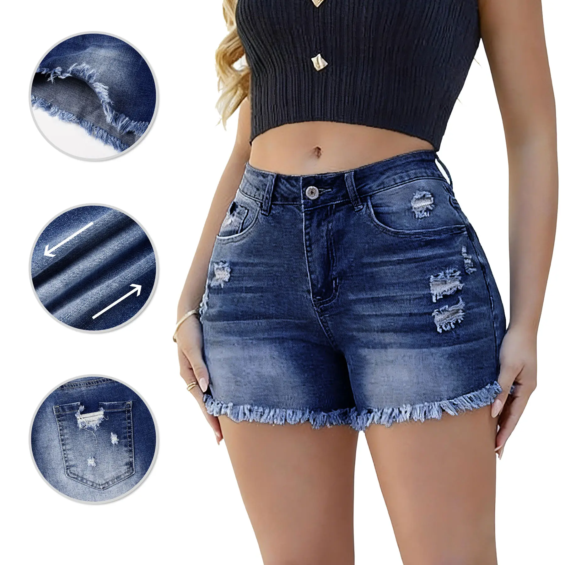If you're looking for a pair of stretchy denim shorts that fits your budget, consider this one. These women's casual denim shorts feature four basic pockets, two in the front and two in the back, and a high-waisted stretch design that flatters your figure, making them both practical and stylish.