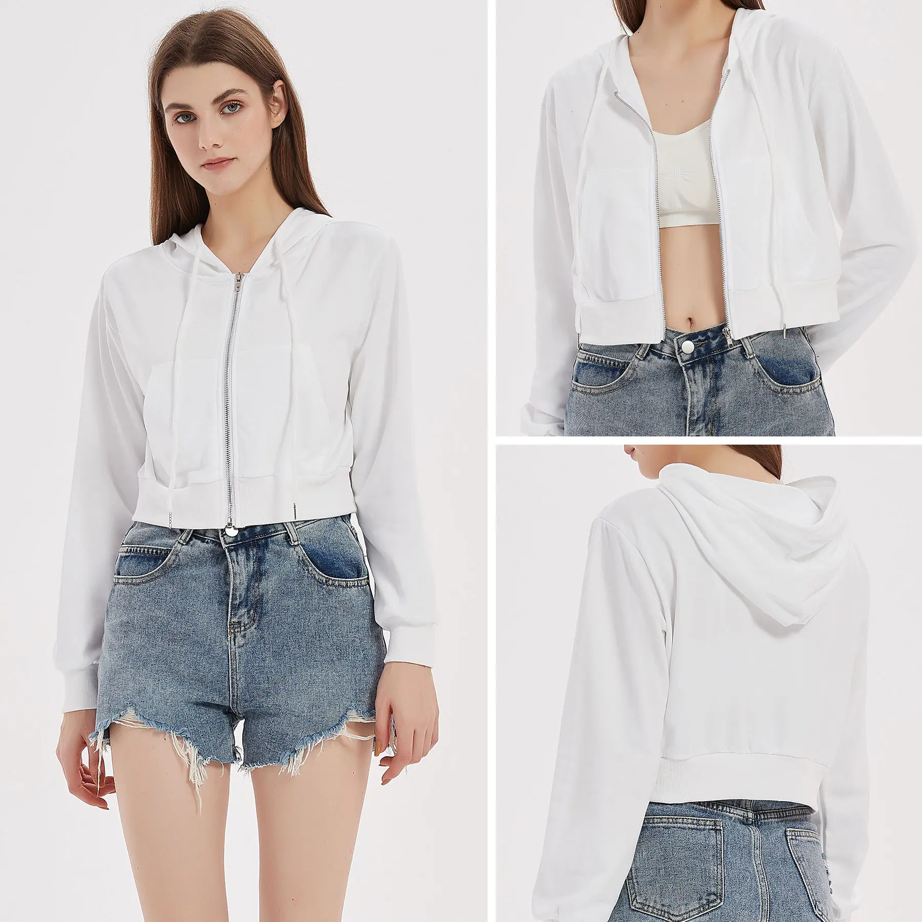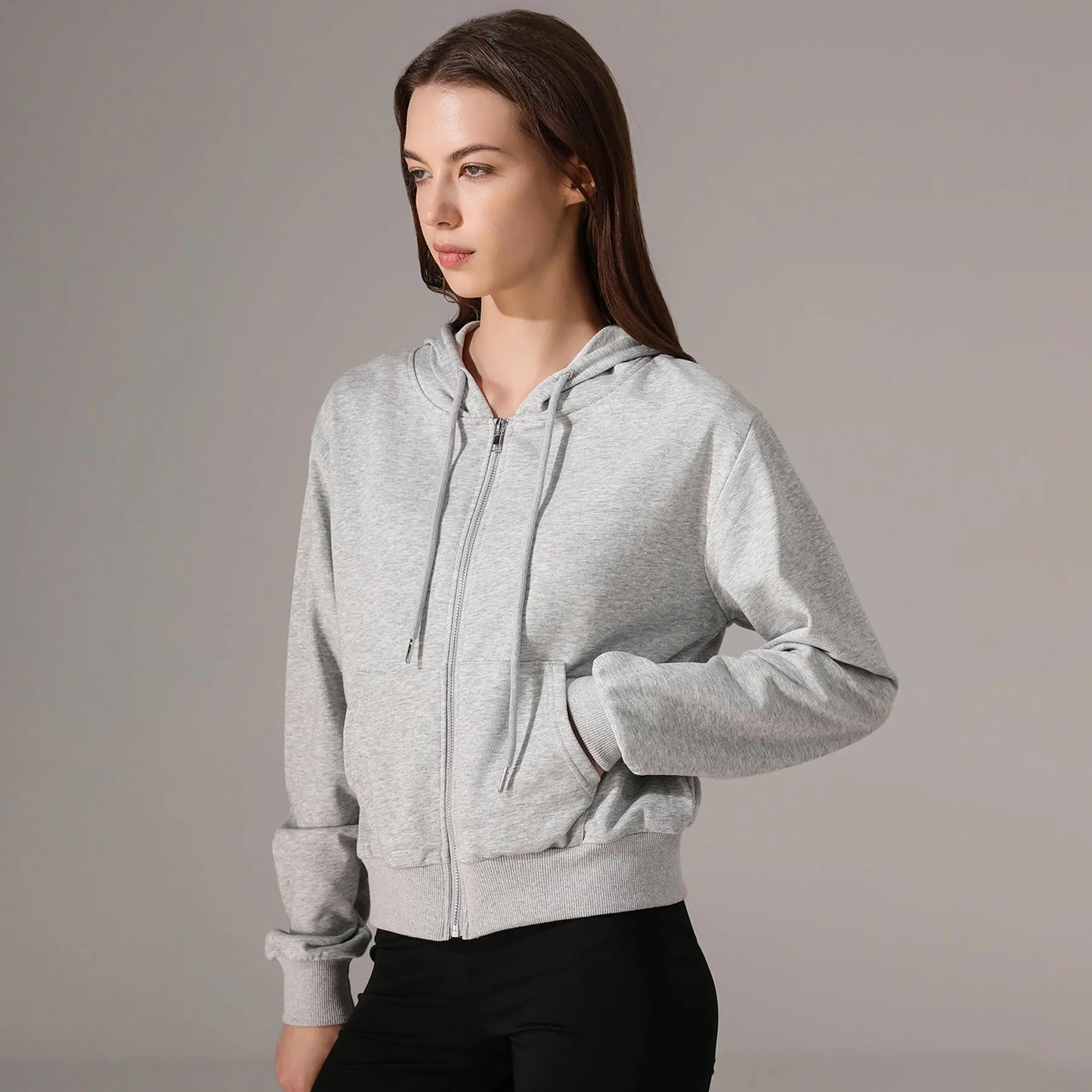 Yimoon Zip Up Hoodie Women Cropped Casual Sweatshirts Workout Long Sleeve Drawstring Hooded Jacket Crop Tops Stylish Versatile Comfort Functionality