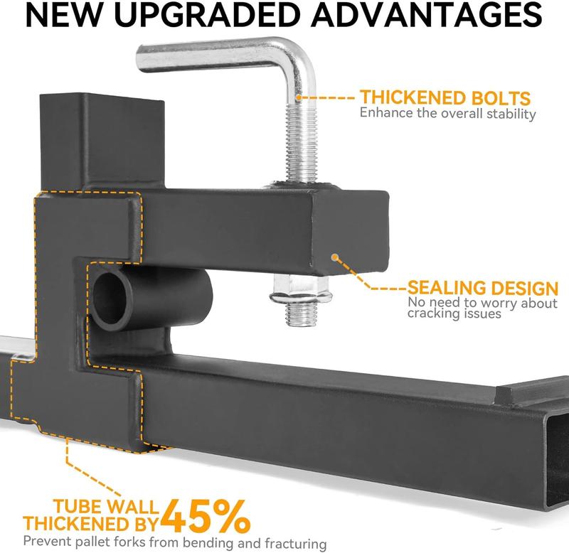 YITAMOTOR 43" 2000LBS / 60" 4000LBS Clamp on Pallet Forks are heavy-duty tractor forks with an adjustable stabilizer bar. Perfect for tractor attachments, skid steer, and loaders. These forks ensure enhanced stability and performance. 🚜