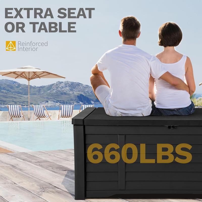 Versatile Outside Storage Box: The deck box's top can support up to 660 pounds, serving not only as a secure storage solution but also as a versatile bench seat for your outdoor space.