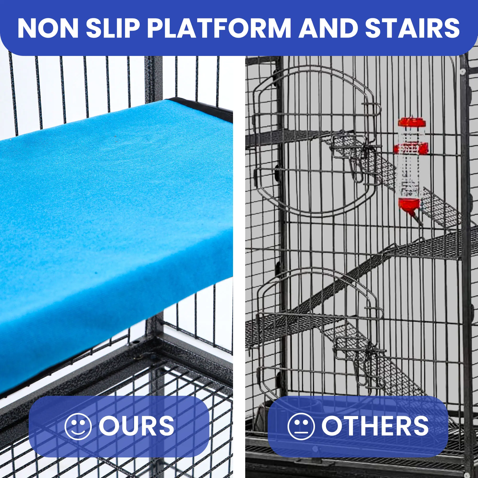 Anti-slip design: The chinchilla cage with plastic platform and stair are wrapped with nylon, which will have better anti slip performance. It can also protect the feet of ferret from being hurt.