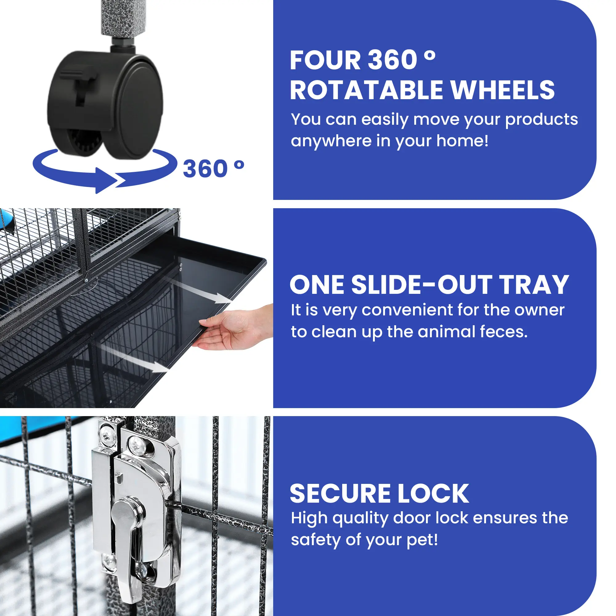 Secure door lock: The door lock is special designed for small animals to keep ferrets, chinchillas save in cage. Even the smart little guy like squirrels or small cats can't open it, more complex and secure than traditional latches.
