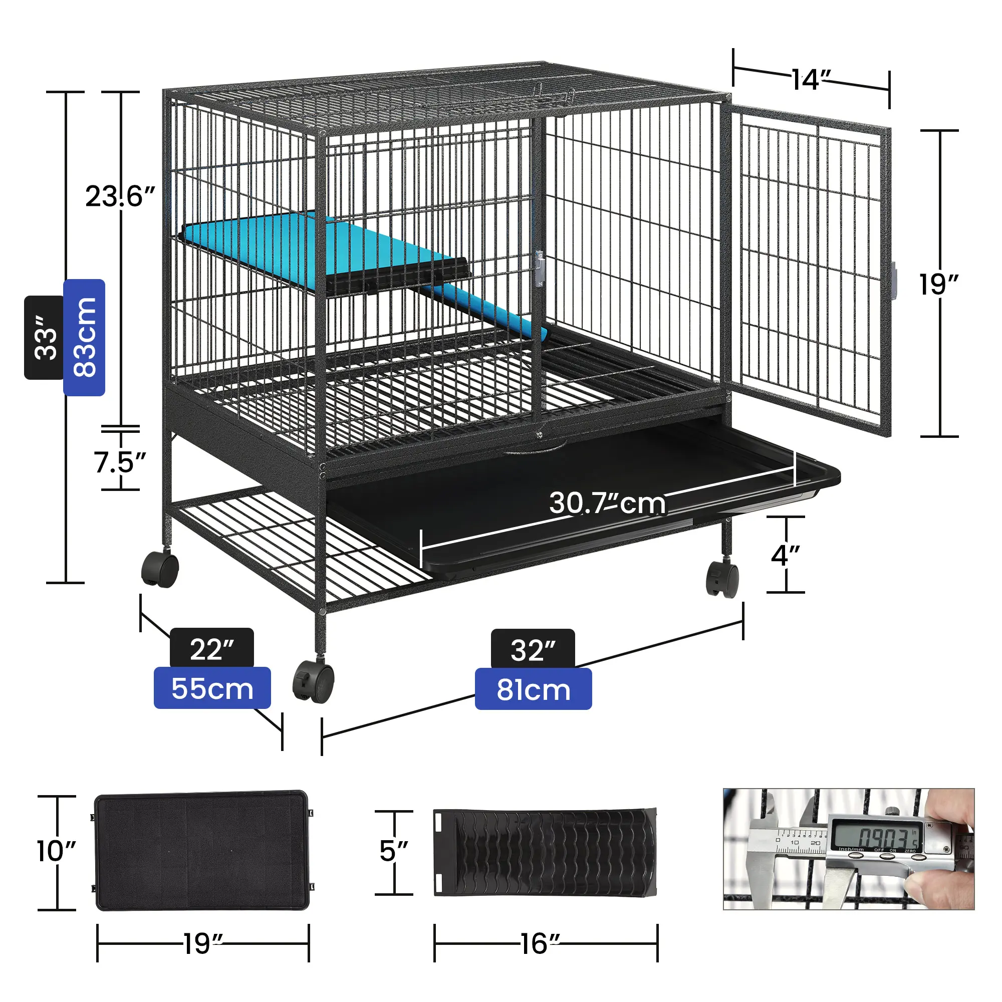 Spacious Space: This critter nation cage with 2-Tiers allow several small animals to have fun at the same time; The anti slip wide ramps expand the playing and resting area for large small pets like guinea pigs, squirrels, chinchillas, ferrets, rabbits, hedgehogs, etc.